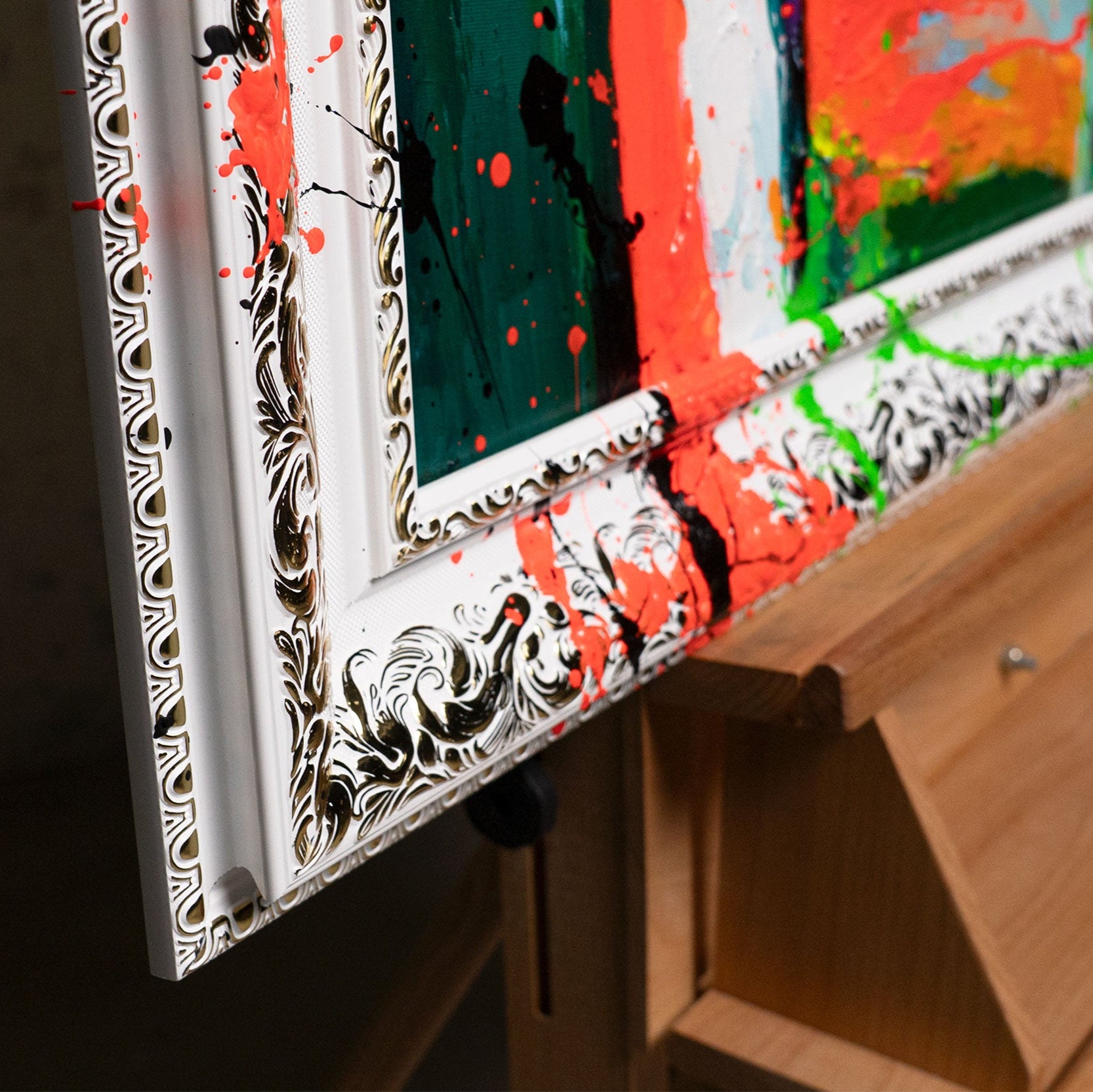 • Rahmenkante mit Farbe handgemalte Wandkunst Nahansicht