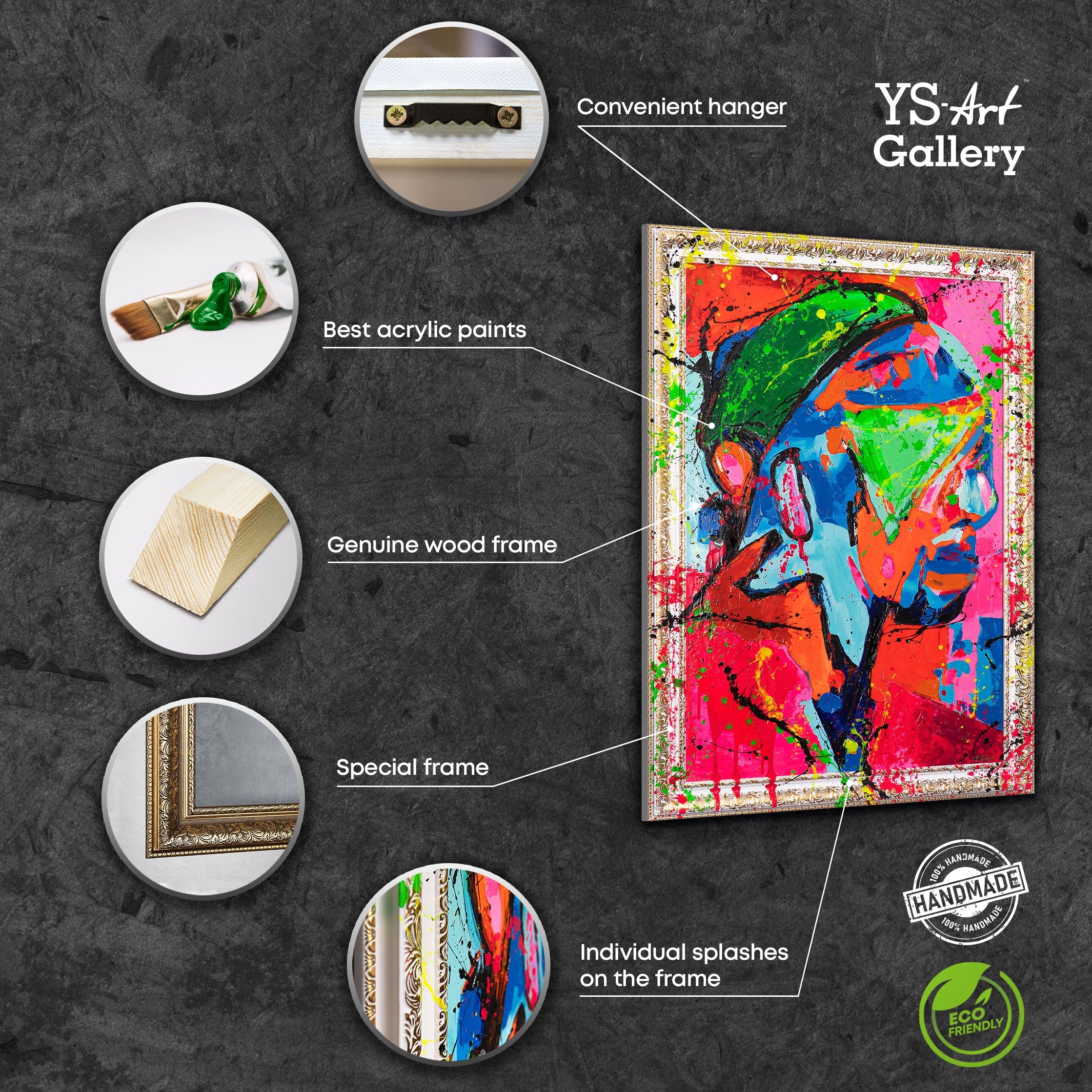 Die Kombination aus kräftigen Farbschichten und expressiven Kontrasten macht dieses Werk zu einer perfekten Wahl für alle, die außergewöhnliche wandbilder modern oder exklusive wanddeko wohnzimmer suchen.