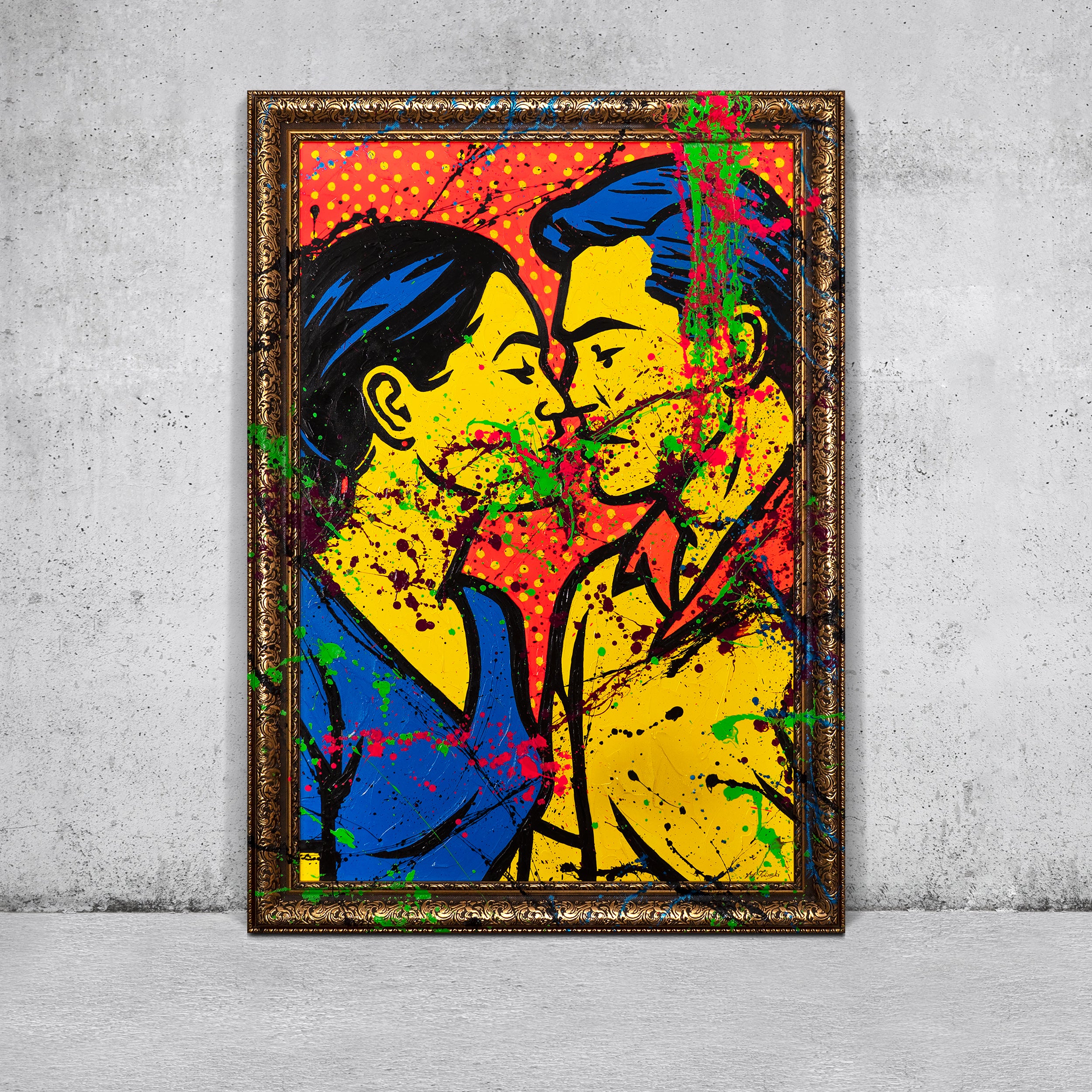 Handgemalte Pop-Art Gemälde – Moderne Wandbilder Wohnzimmer „Farbiger Kuss“