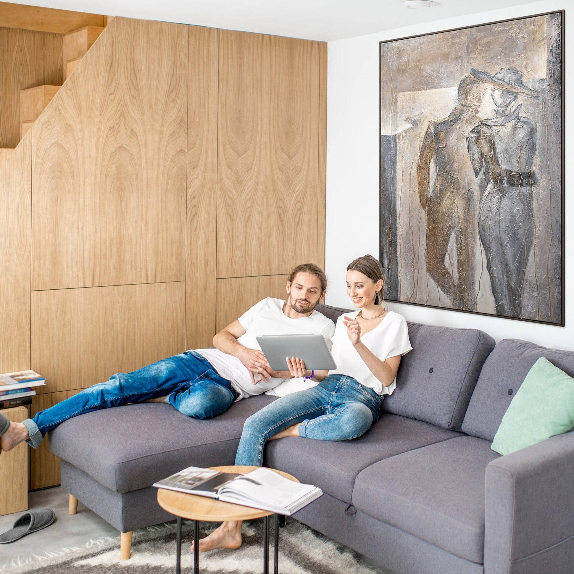 Acrylgemälde auf leinwand, gemälde mit rahmen: wanddeko wohnzimmer