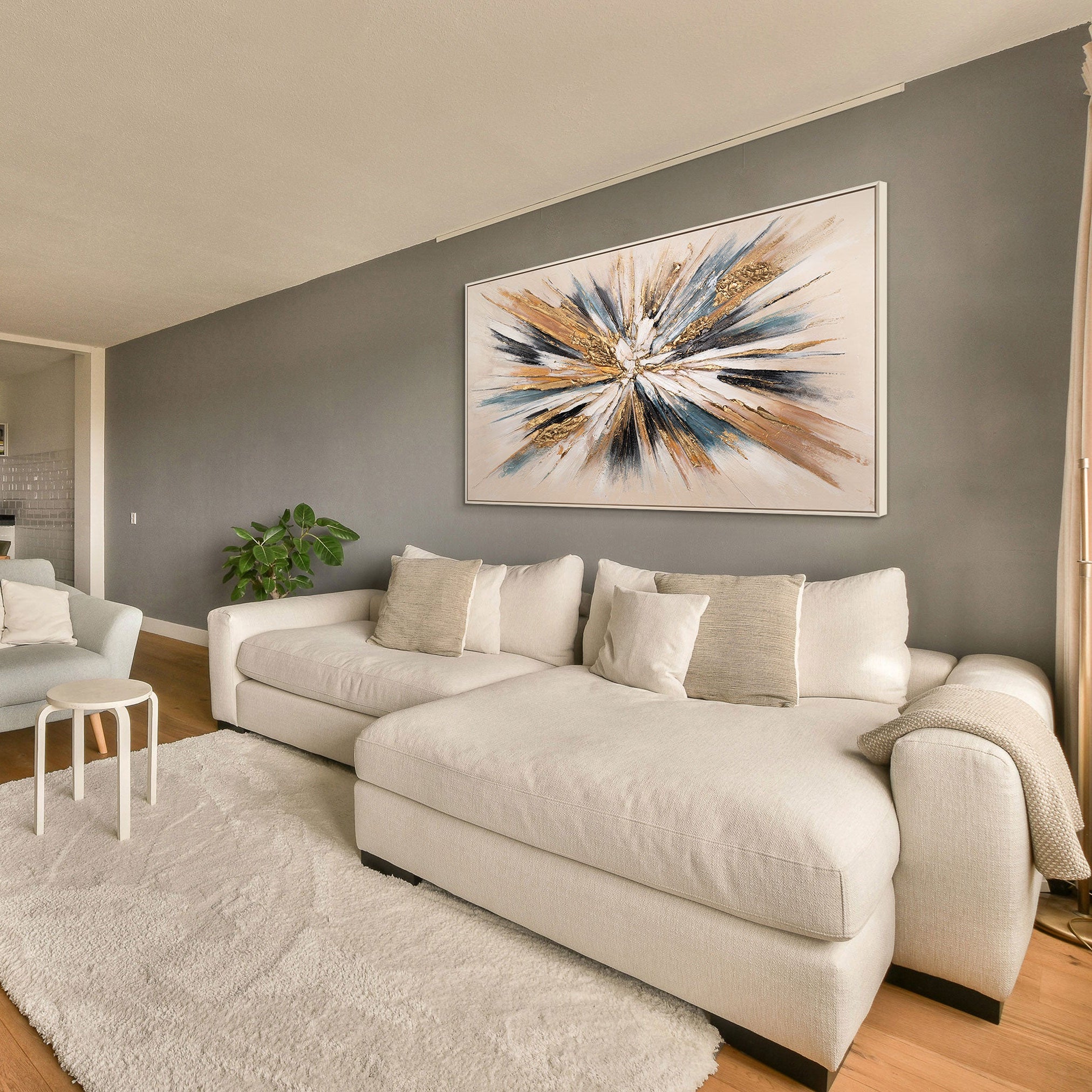 Abstrakte Acrylbilder mit Rahmen - Handgemaltes Leinwandbild modern "Impuls"