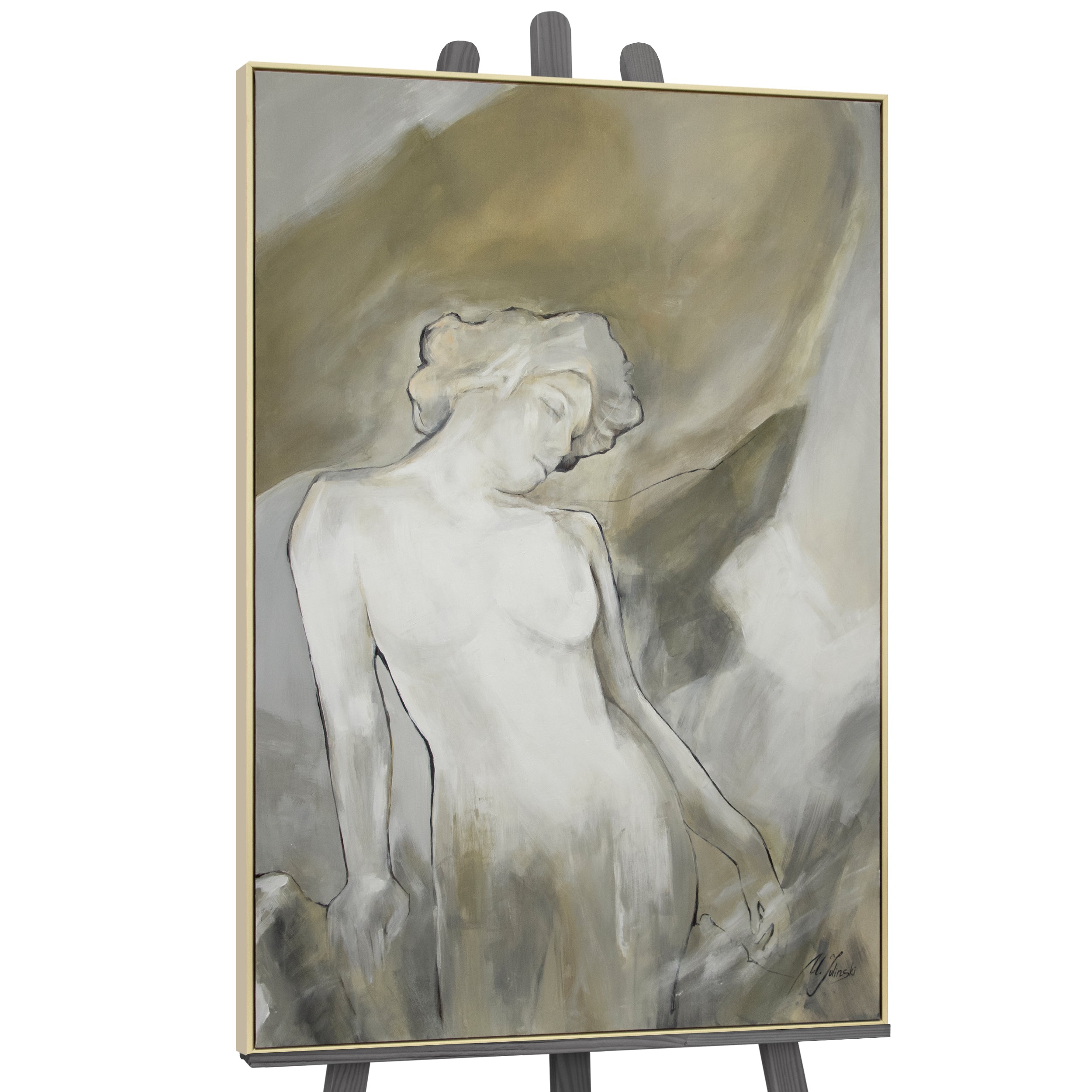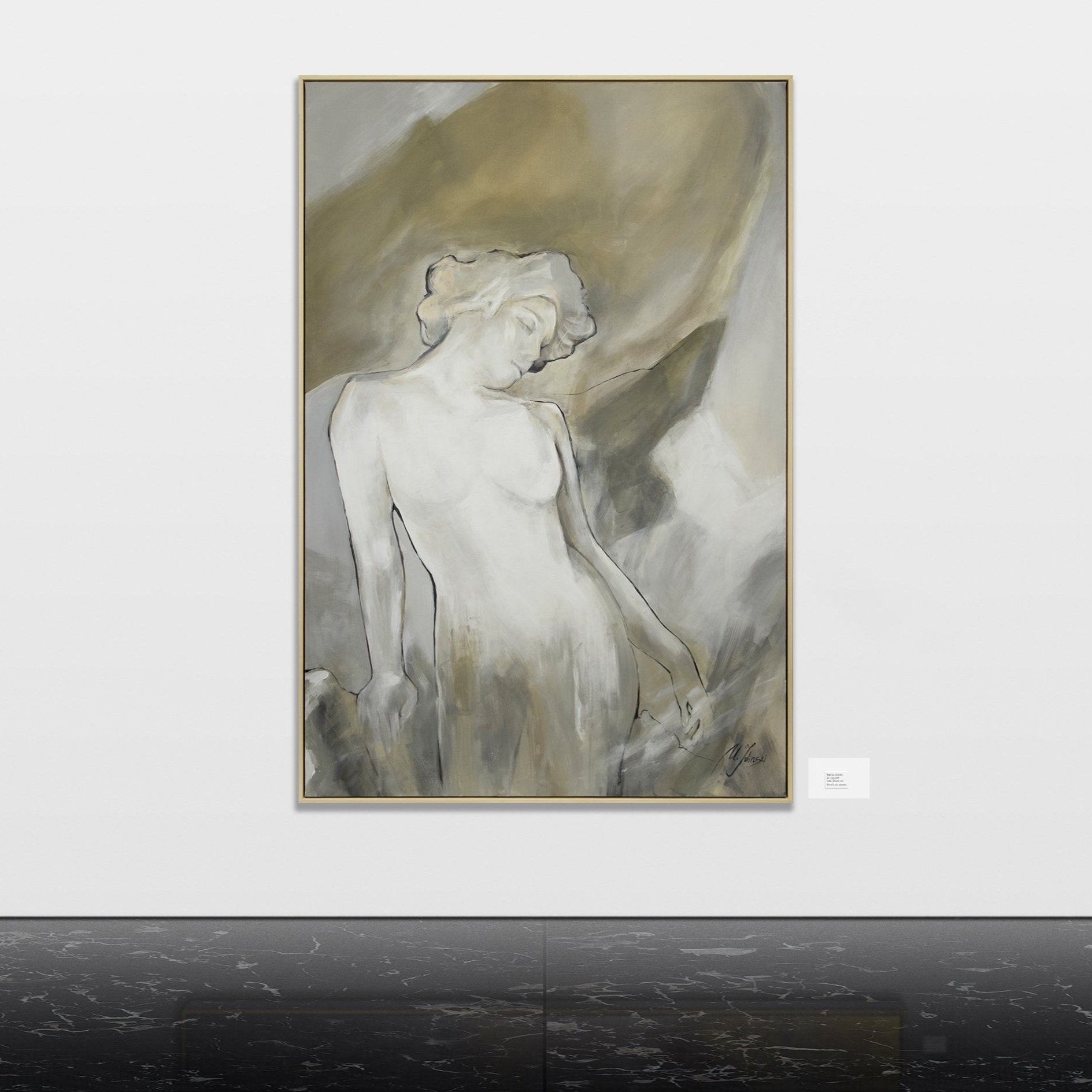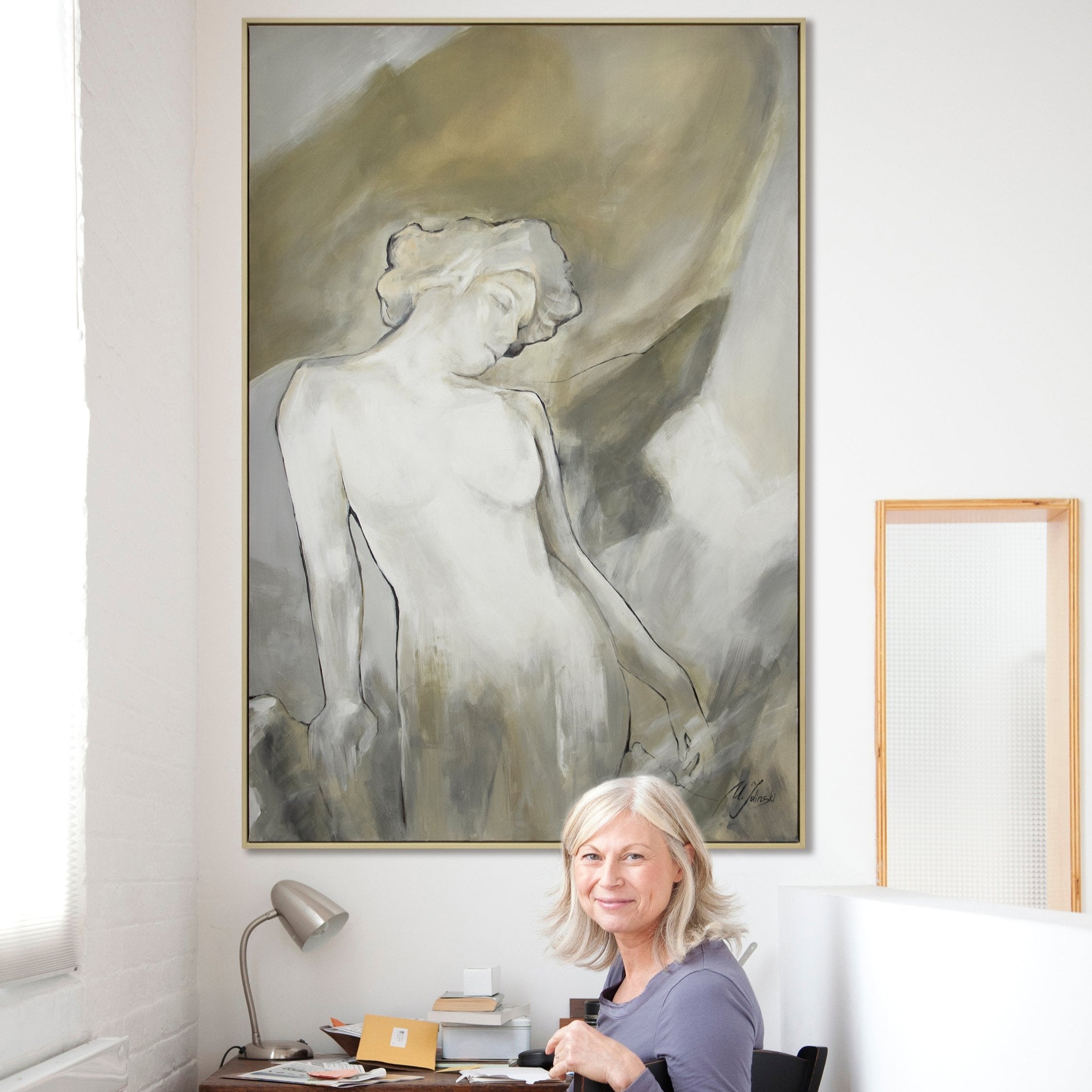 Abstrakte Acrylmalerei Rotterdam – Frau in sanften Erdtönen auf Leinwand mit Rahmen