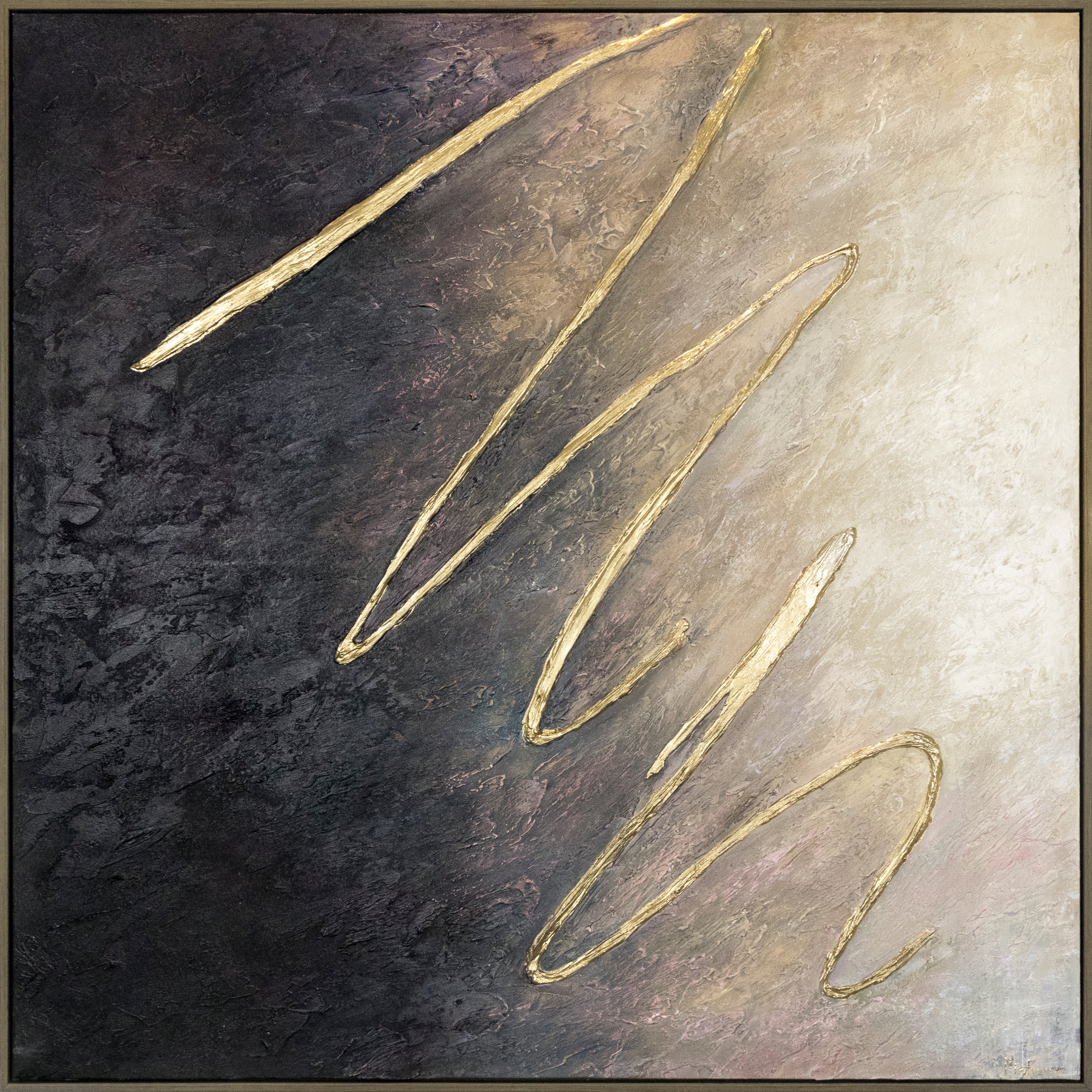 • Nahaufnahme goldener Linien auf strukturierter Acrylfläche