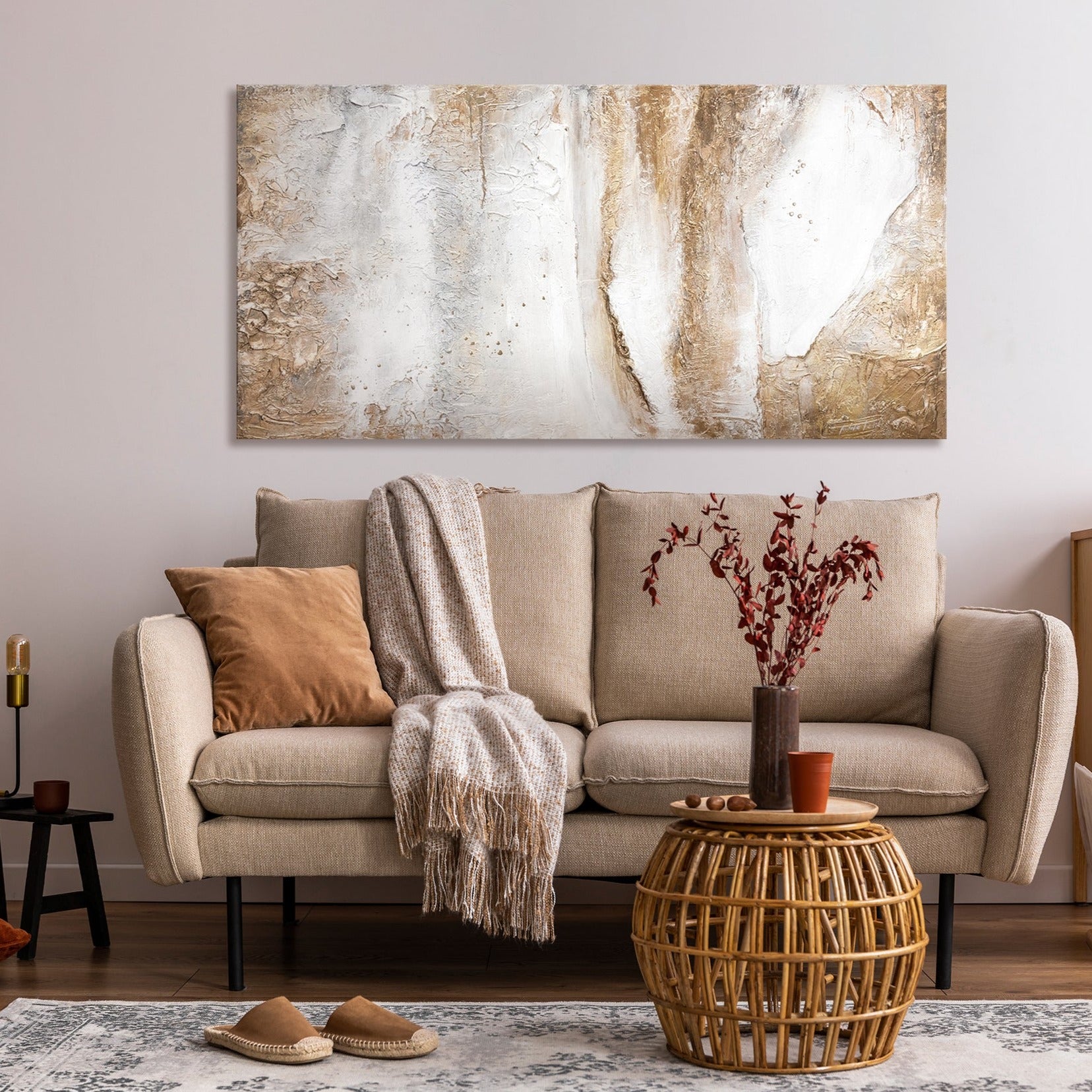 • Abstraktes Acrylbild Struktur Wanddeko Gold Beige