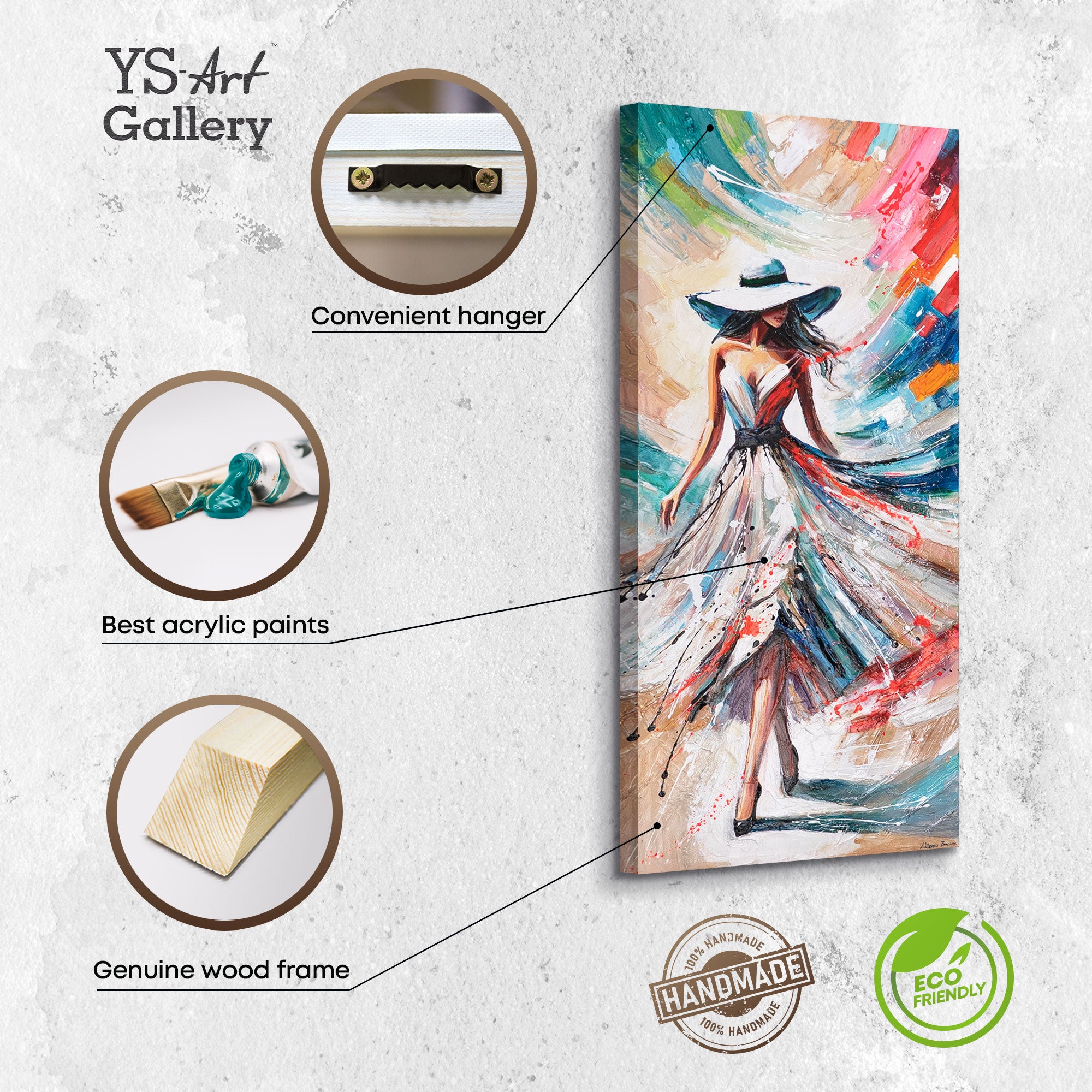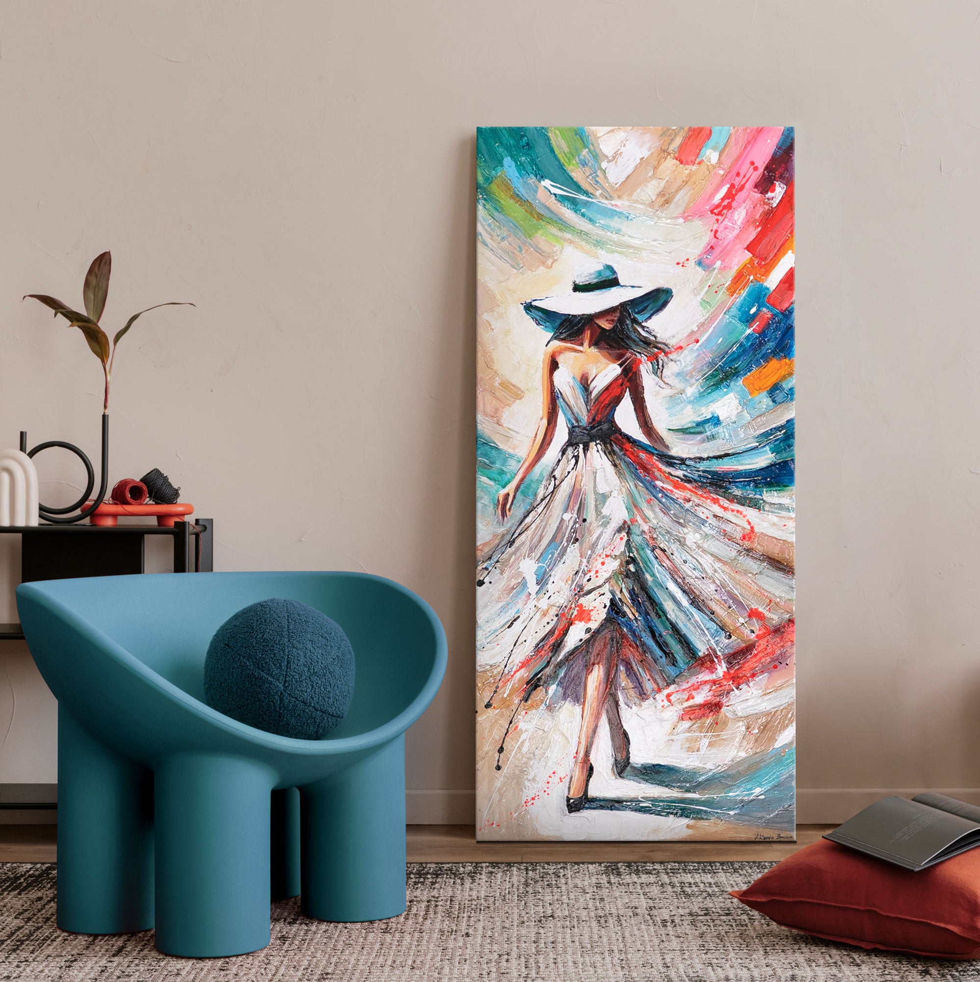• frau mit hut abstrakt, feminine kunst auf leinwand