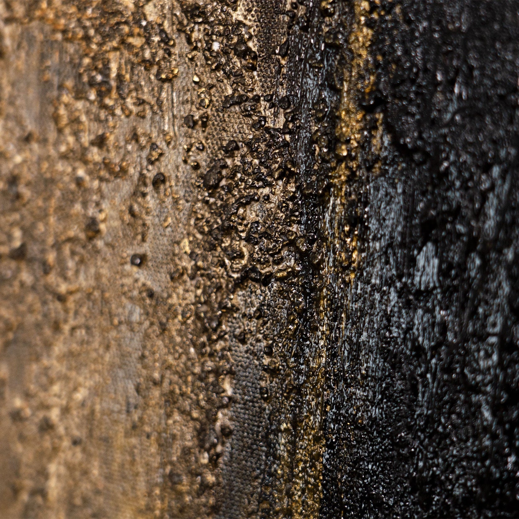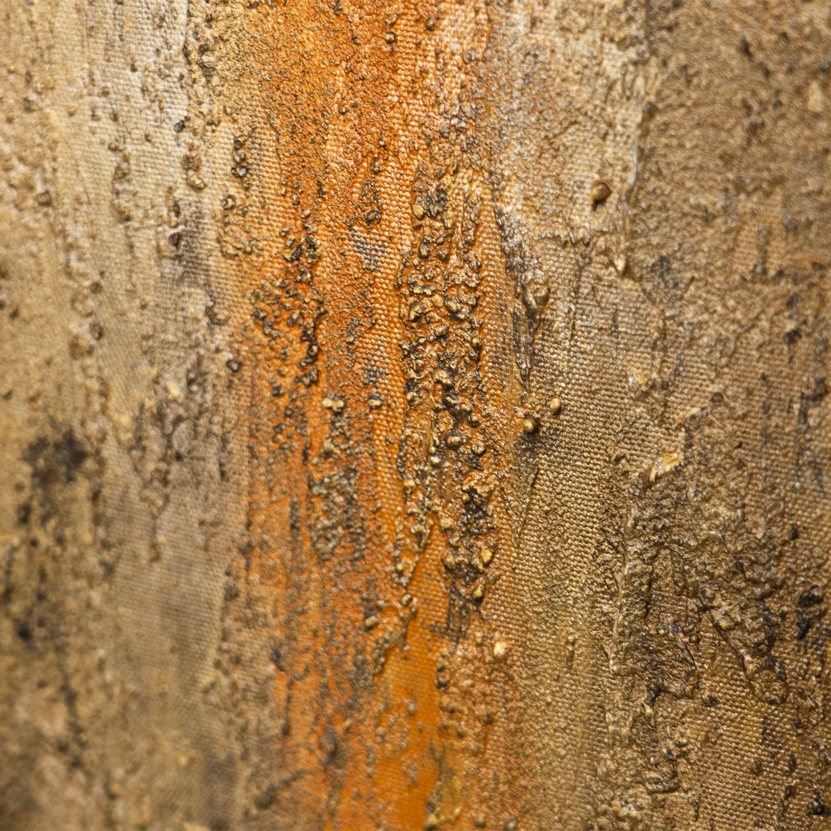 „Tiefe der Zeit“ ist eine abstrakte Acrylmalerei mit intensiver, mineralischer Struktur und gedämpfter Farbpalette aus Grau-, Braun- und Erdtönen. Die horizontale Akzentlinie verleiht dem Gemälde Spannung und Tiefe und erinnert an geologische Schichten oder eine ruhige Landschaft im Wandel der Zeit.