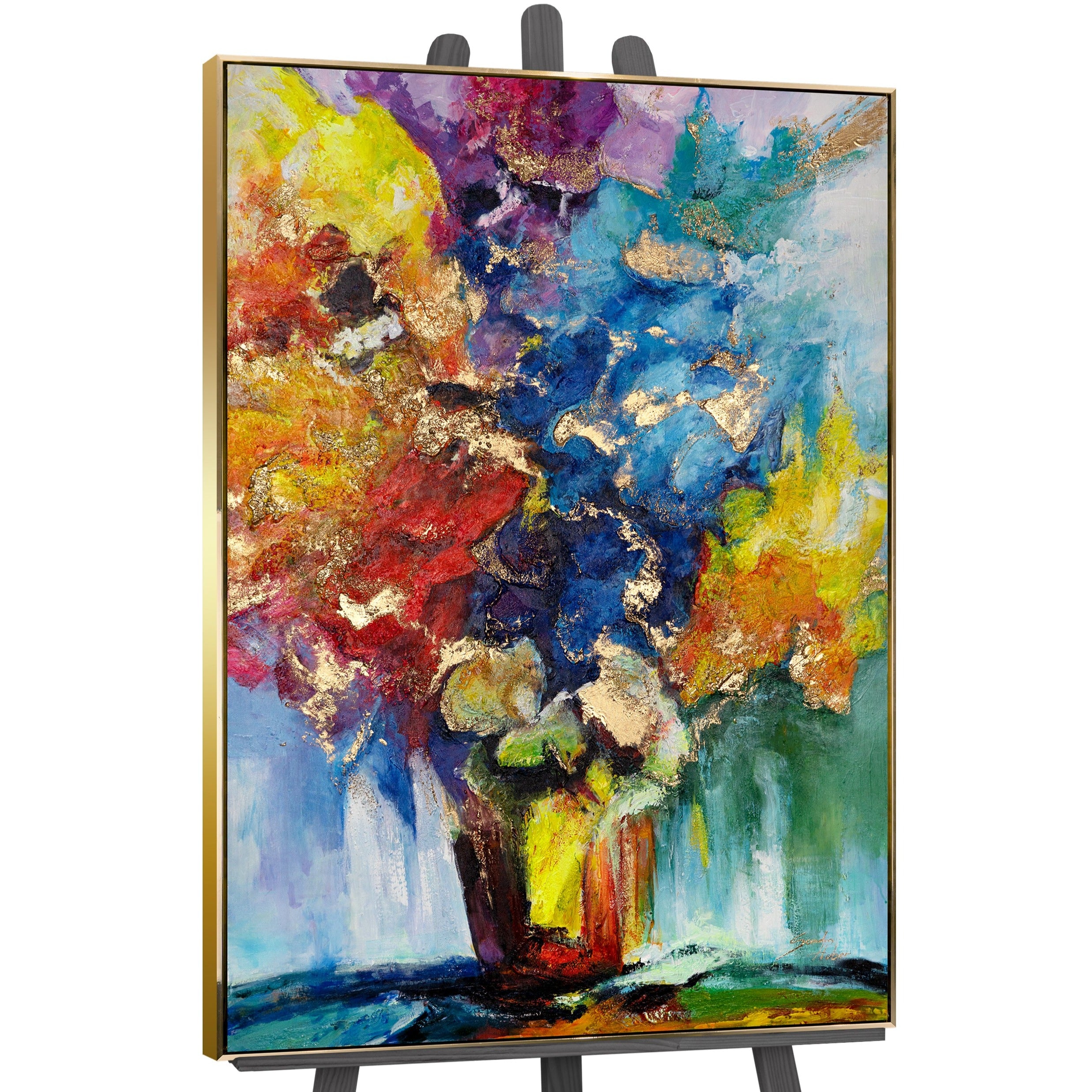 Acryl Gemälde mit Rahmen "Sonnenblumenstrauß" Blumen in lebhaften Farben