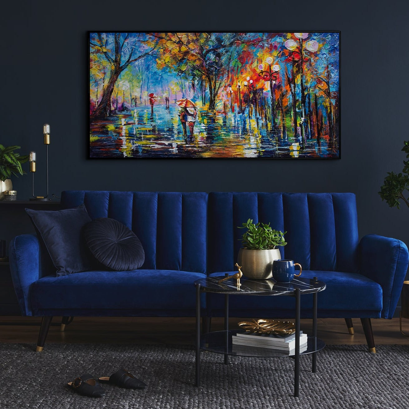 Acryl Malen Bilder "Herbstliche Allee" handgemalt Kunst Bilder Wohnzimmer