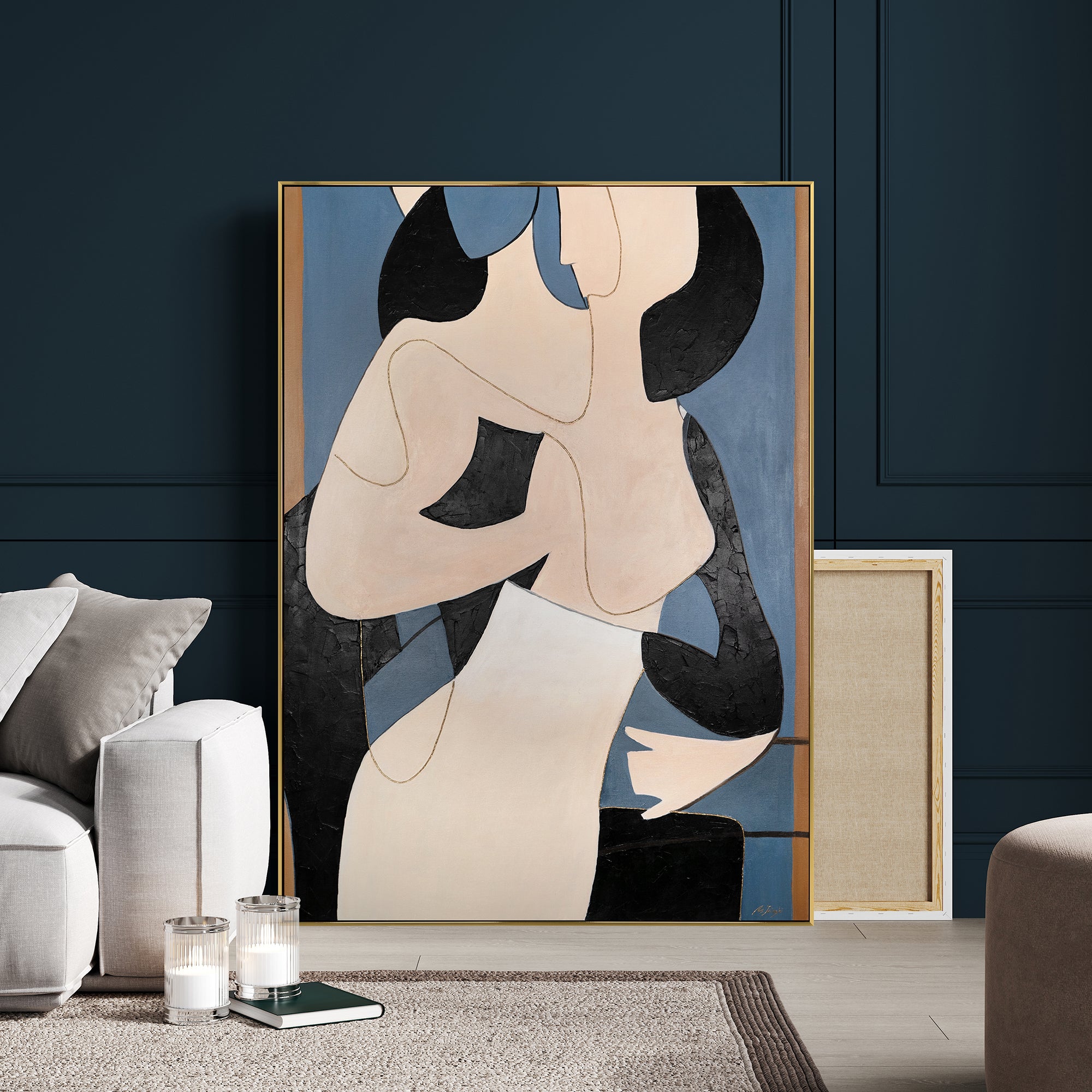 Bilder mit Rahmen abstrakt Handgemaltes Kunstwerk mit zwei Figuren Gestreifte Symphonie