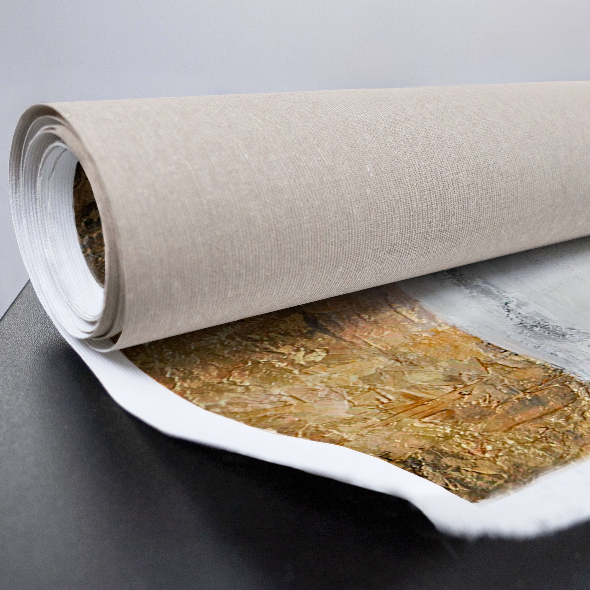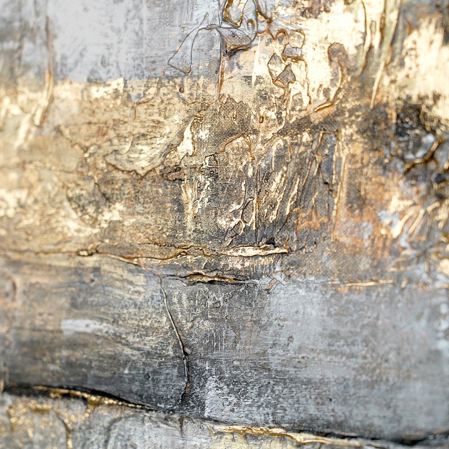 • Abstraktes Gemälde in Gold Grau auf gerollter Leinwand