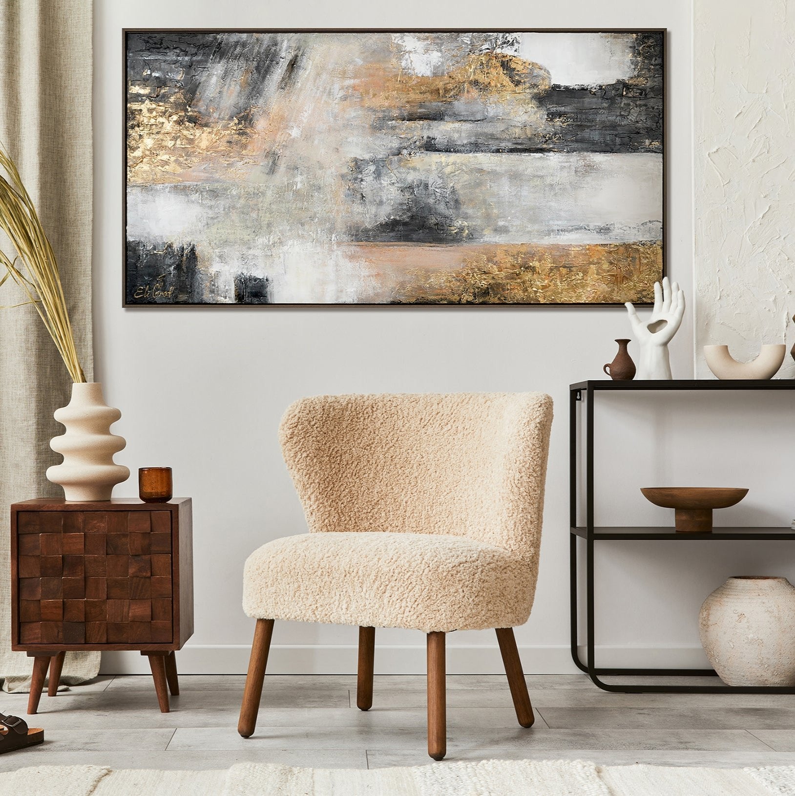 Mit „Farbmagie“ präsentieren wir ein beeindruckendes Acrylgemälde, das durch seine ausgewogene Komposition aus Gold-, Grau- und Weißtönen begeistert. Die strukturierte Oberfläche bringt Tiefe und Bewegung ins Bild und verleiht jedem Raum eine moderne, künstlerische Ausstrahlung. Das Spiel von Licht und Textur macht dieses Gemälde zu einem faszinierenden Blickfang – kraftvoll und zugleich harmonisch.