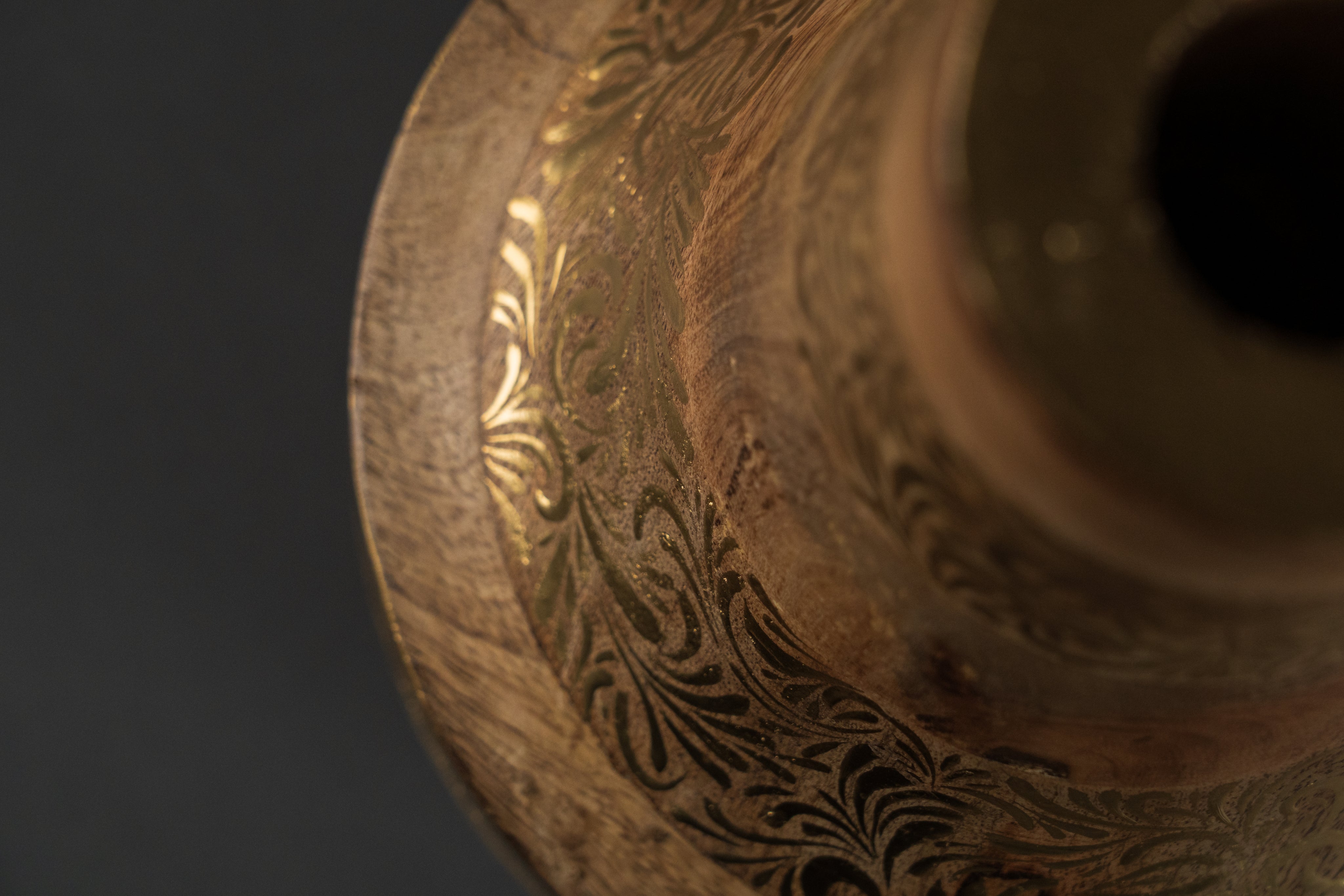 • Handgefertigte Holzvase mit Goldmuster – Exklusives Interieur-Dekor