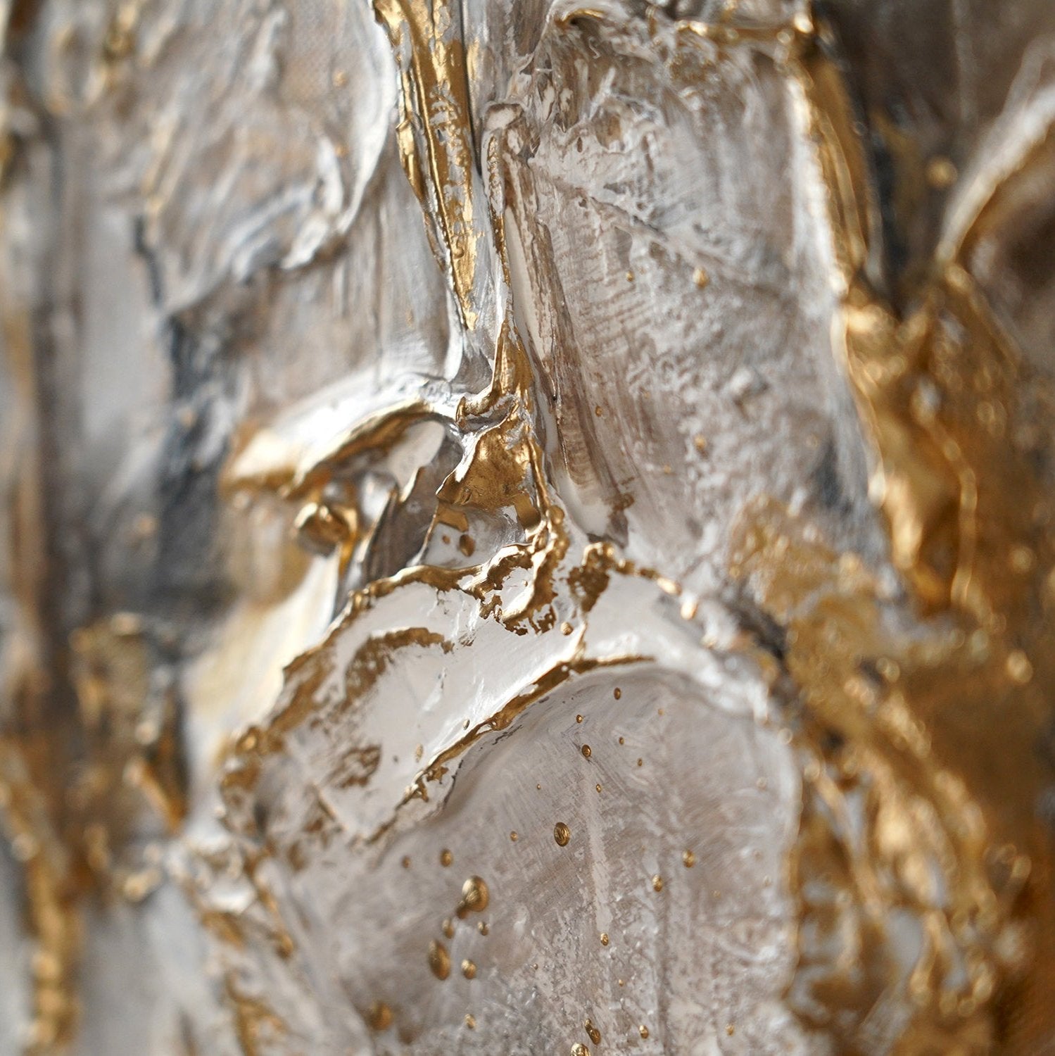 • Struktur Gemälde auf Leinwand mit goldweißen Akzenten