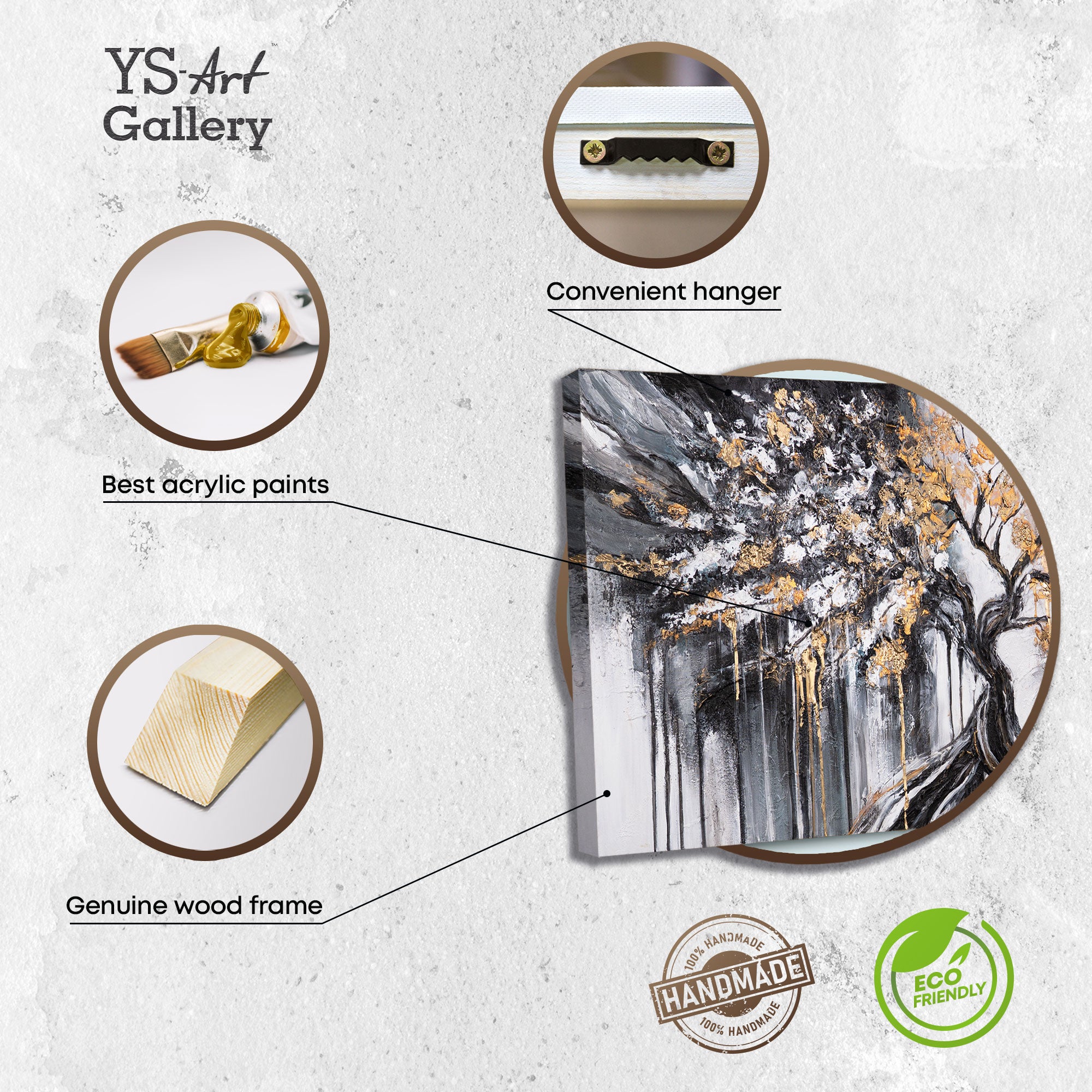 • Acrylbild mit Baum und Goldstruktur auf Staffelei – Wanddeko