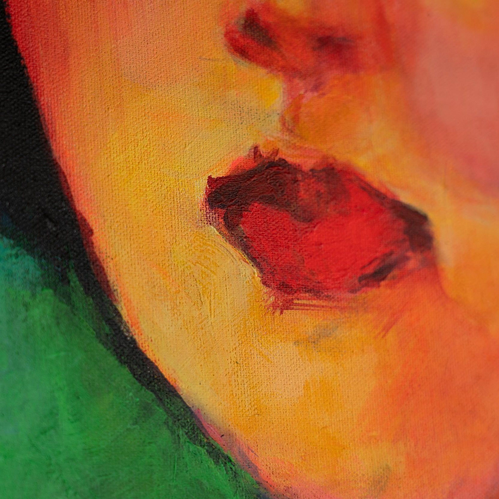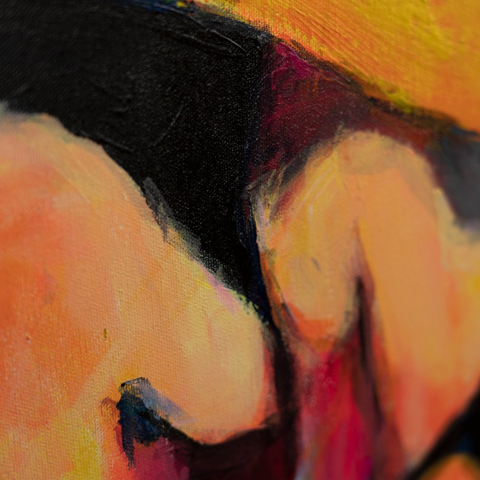 Dieses Gemälde auf Leinwand ist ideal für zeitgenössische Räume und schafft ein starkes visuelles Statement.