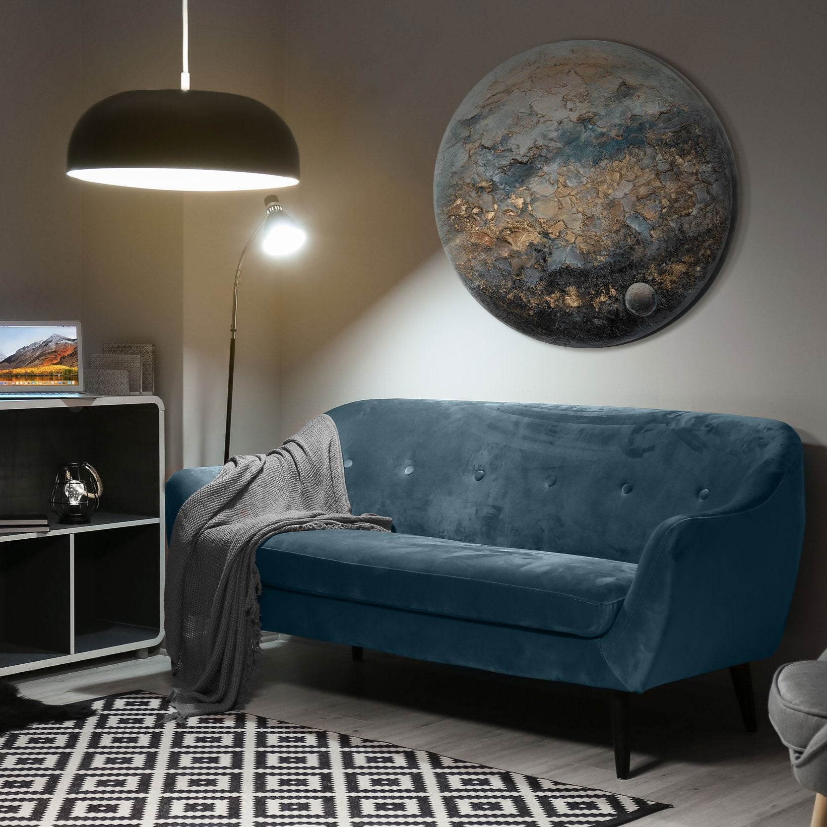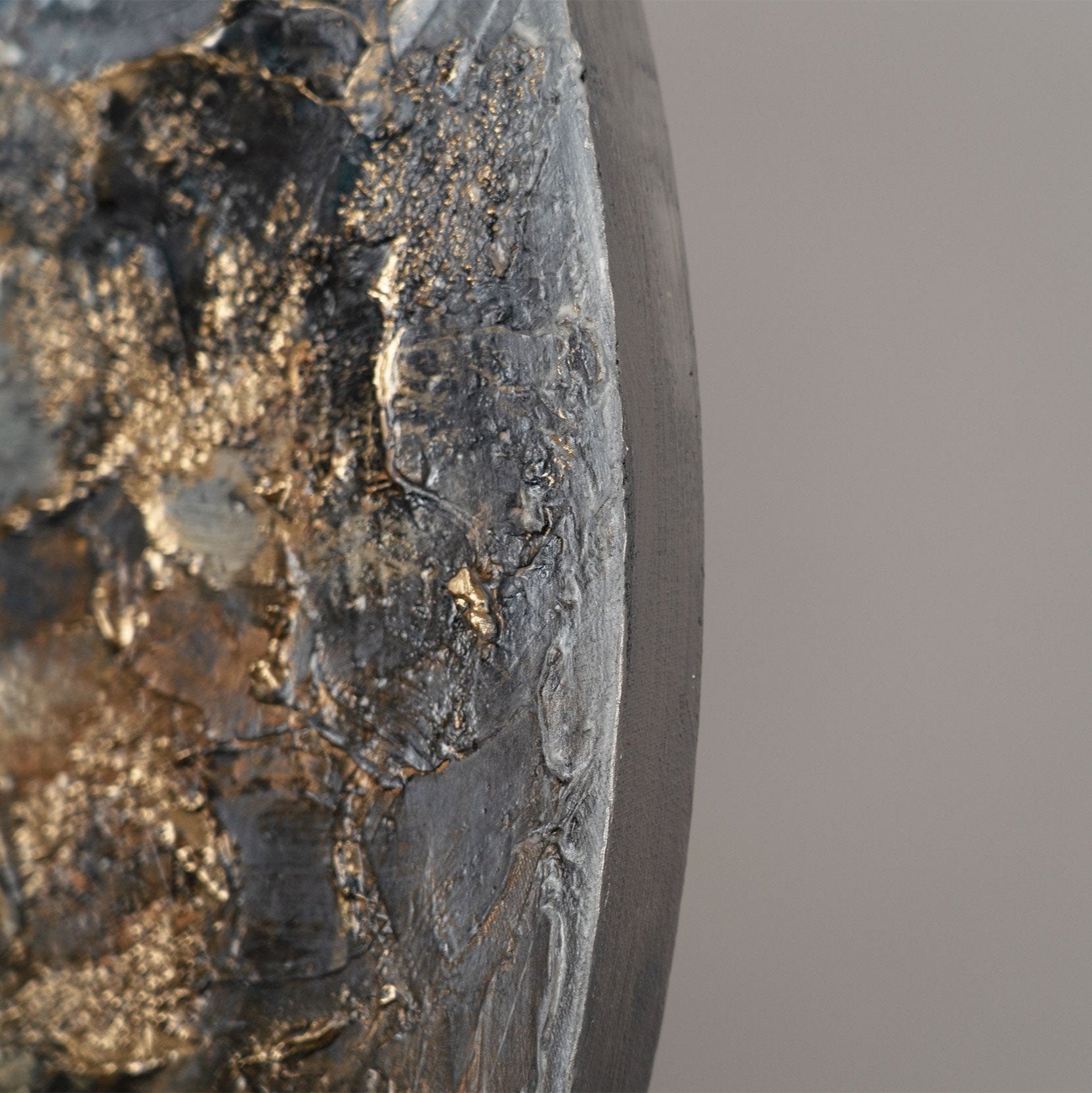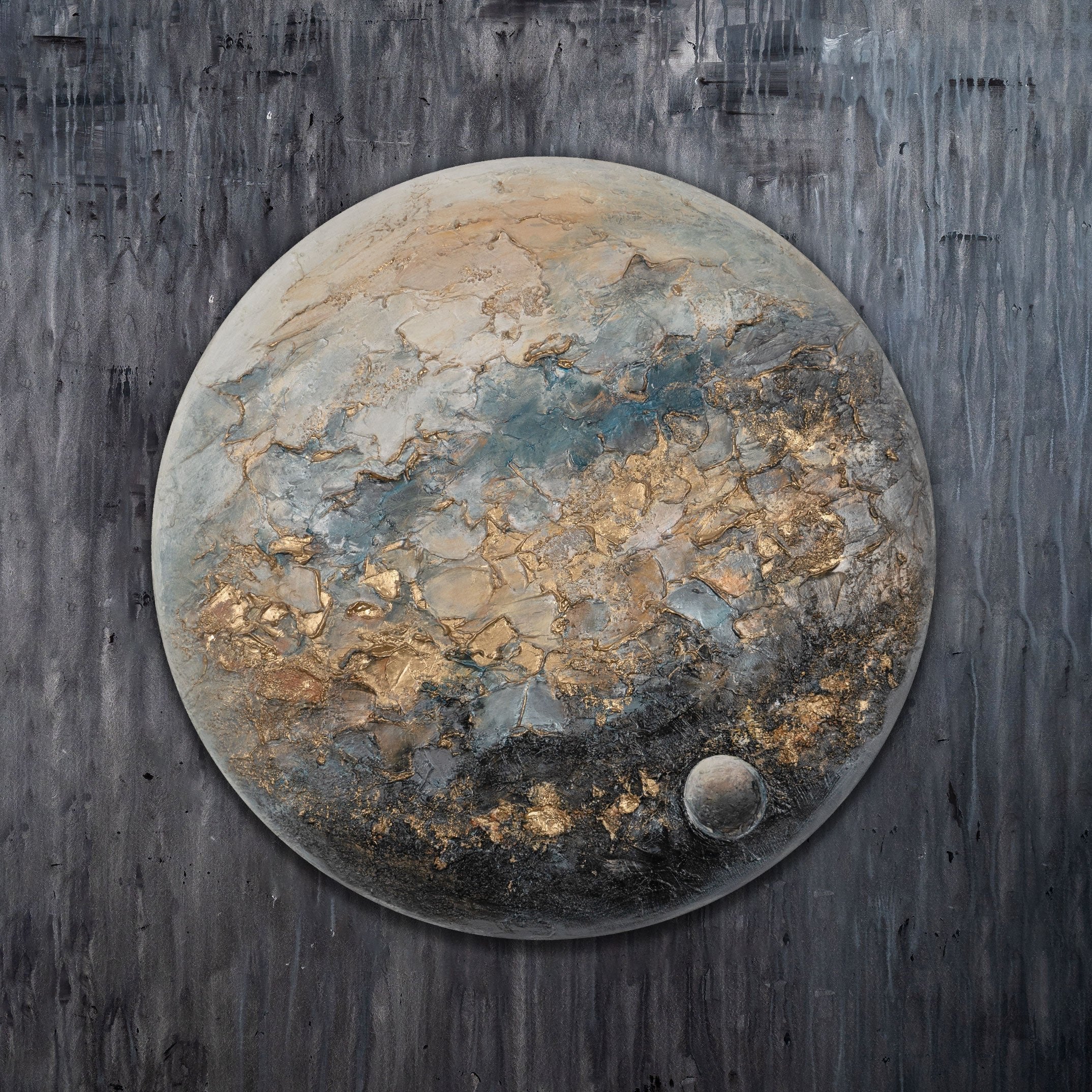 "Orbis" vereint moderne Ästhetik und künstlerische Handwerkskunst. Das handgemalte Acrylgemälde in Planetform strahlt Eleganz aus und eignet sich hervorragend, um Wohnzimmer, Schlafzimmer oder Büros mit einem inspirierenden Highlight zu bereichern.