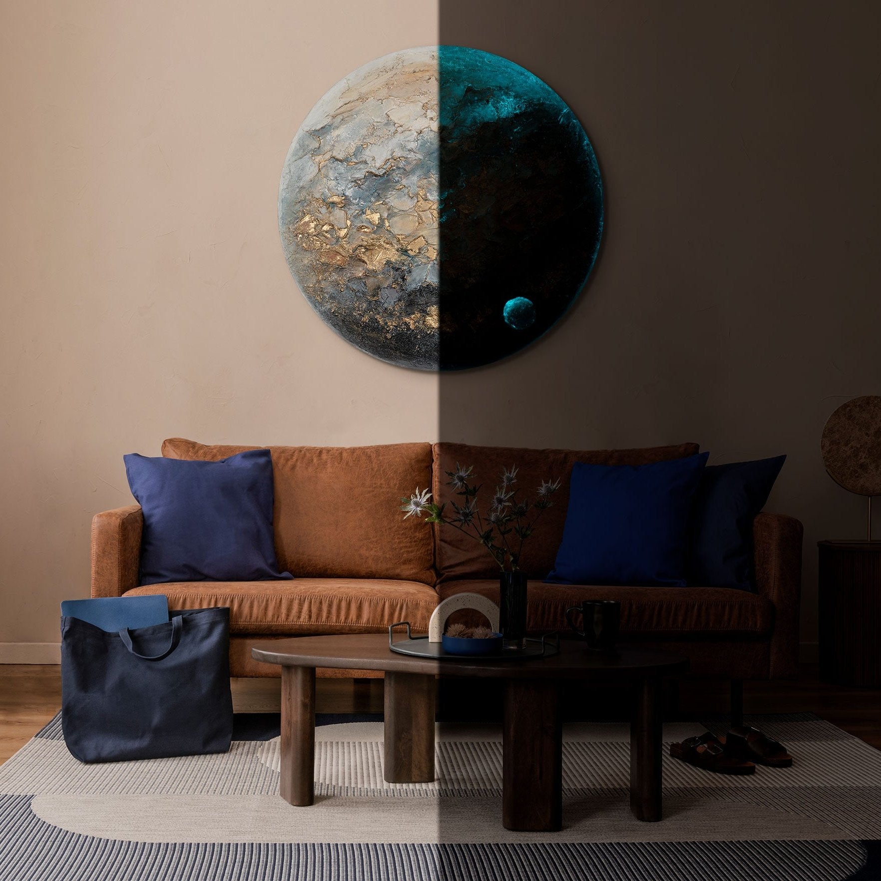 Leuchtendes Acrylbild mit goldenen Details und moderner Ästhetik - Orbis
