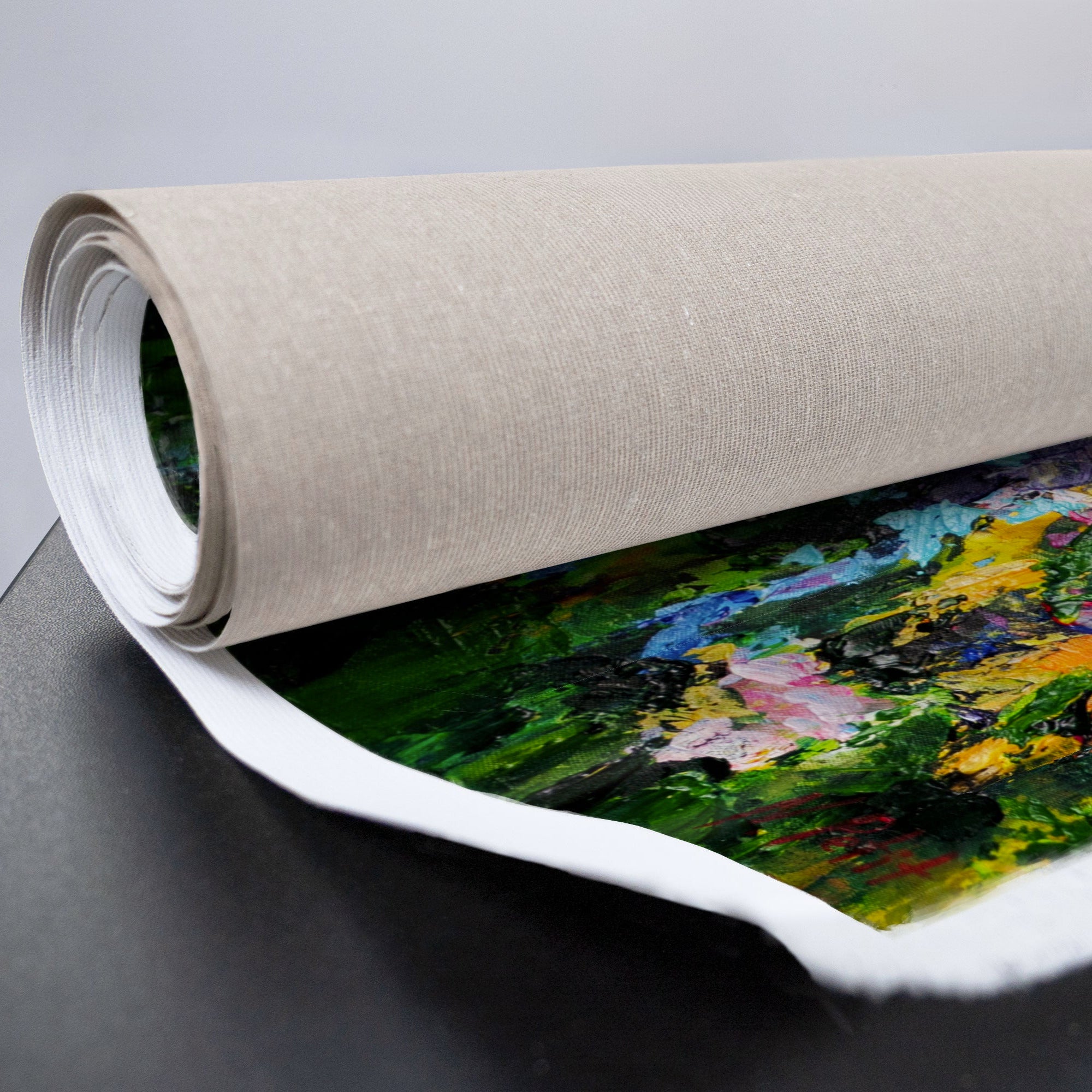 - Gerollt & sicher verpackt, ohne Rahmen