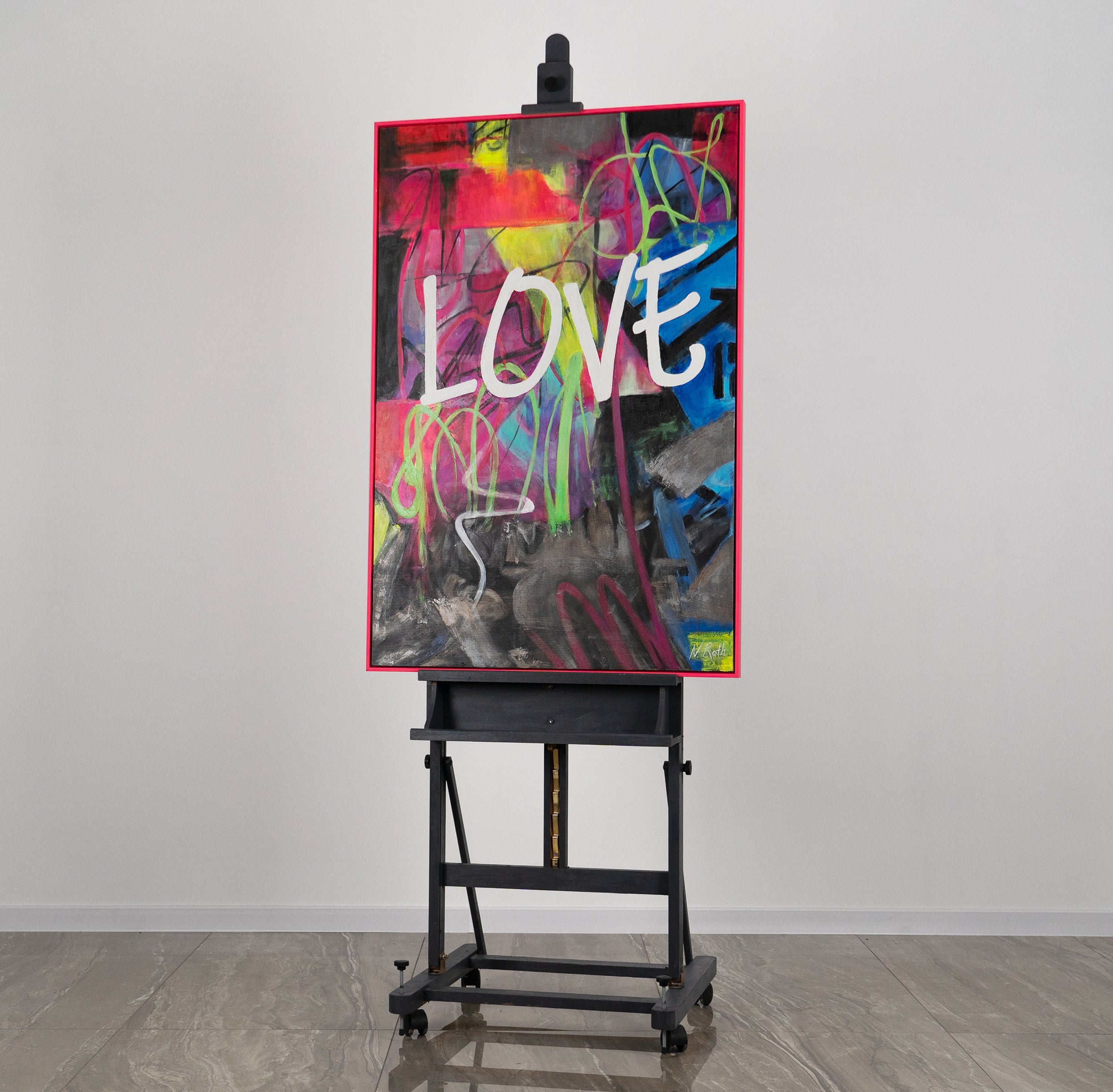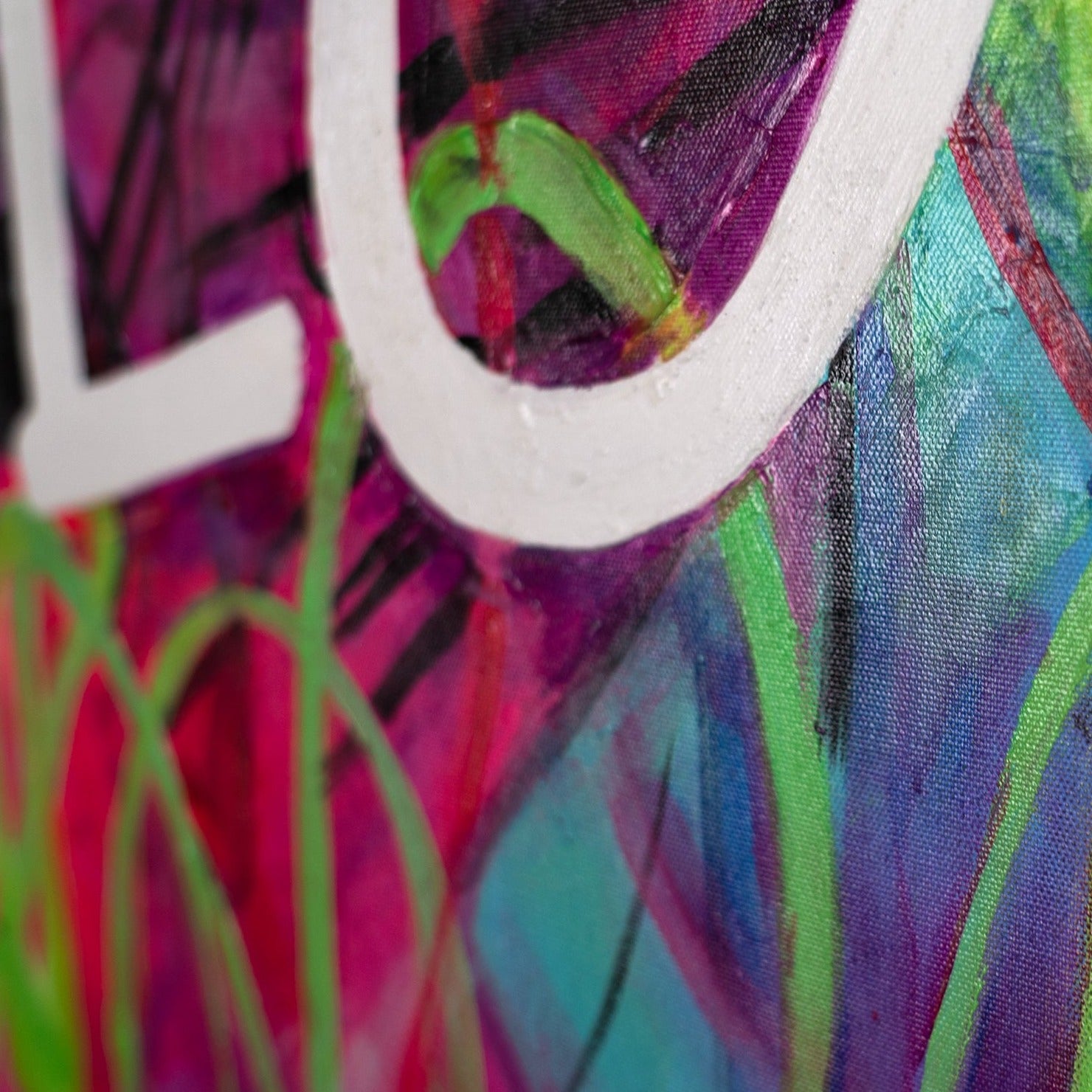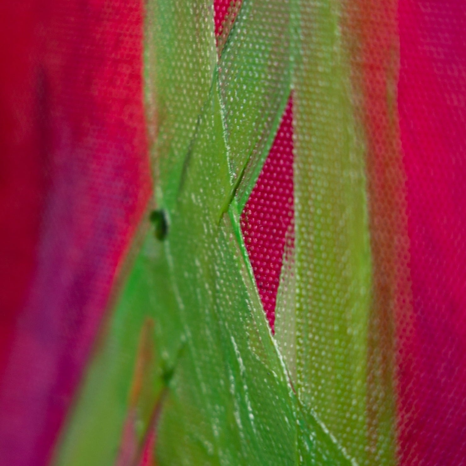 2. Gemalt mit Acryl- und Fluoreszierenden Farben, die Umweltfreundlich sind. Wir spannen die Leinwand auf einen Keilrahmen aus Naturholz. Da das Gemälde für viele Jahre erhalten bleiben soll, wir die die Oberfläche mit einem Acryllack auf Wasserbasis, bedeckt
