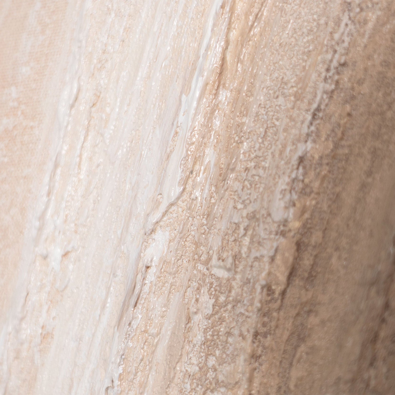 « Wüstes Flüstern » (Murmures sauvages) est une peinture acrylique abstraite inspirée des paysages sablonneux, des mouvements du vent et des formations naturelles. Des tons doux de beige, crème et brun s'écoulent en lignes fluides et créent une profondeur calme et terreuse.