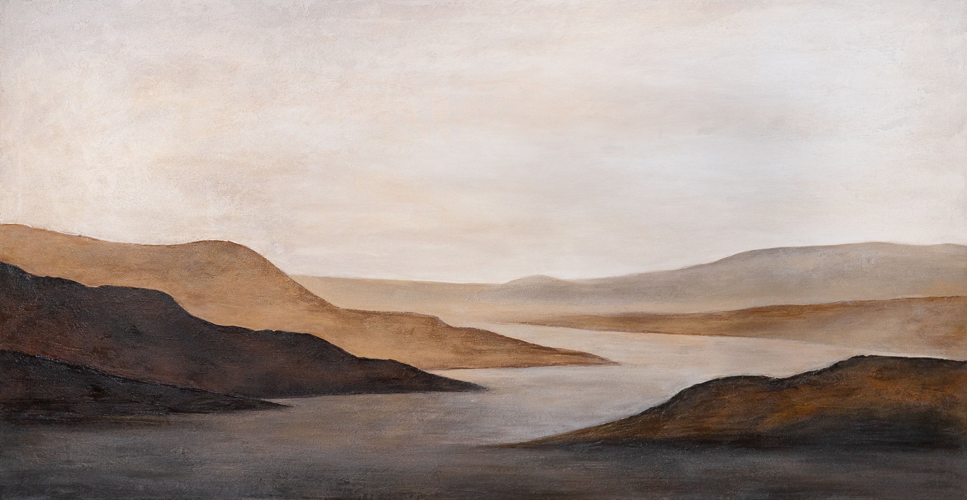 Peinture acrylique sur toile "Douce Levée du Soleil" – Paysage peint à la main en beige et brun