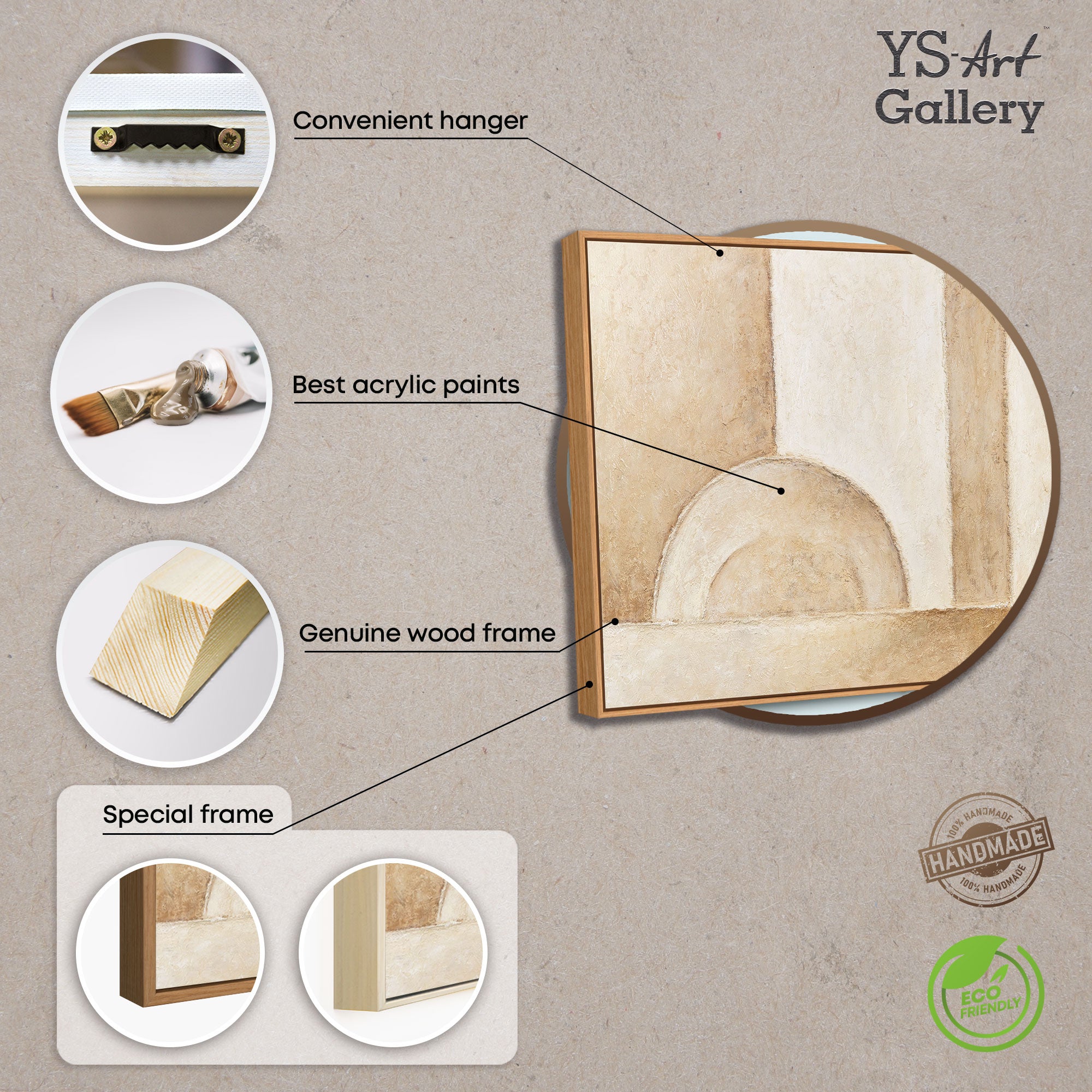 Apportez une élégance claire et une harmonie architecturale à votre intérieur avec cette peinture à la main. Des formes géométriques dans des tons doux de beige et de sable se combinent pour créer une composition moderne et minimaliste qui dégage calme et équilibre.