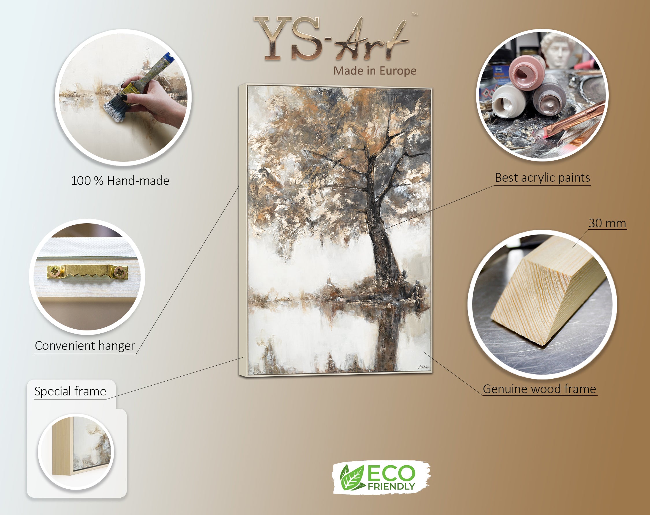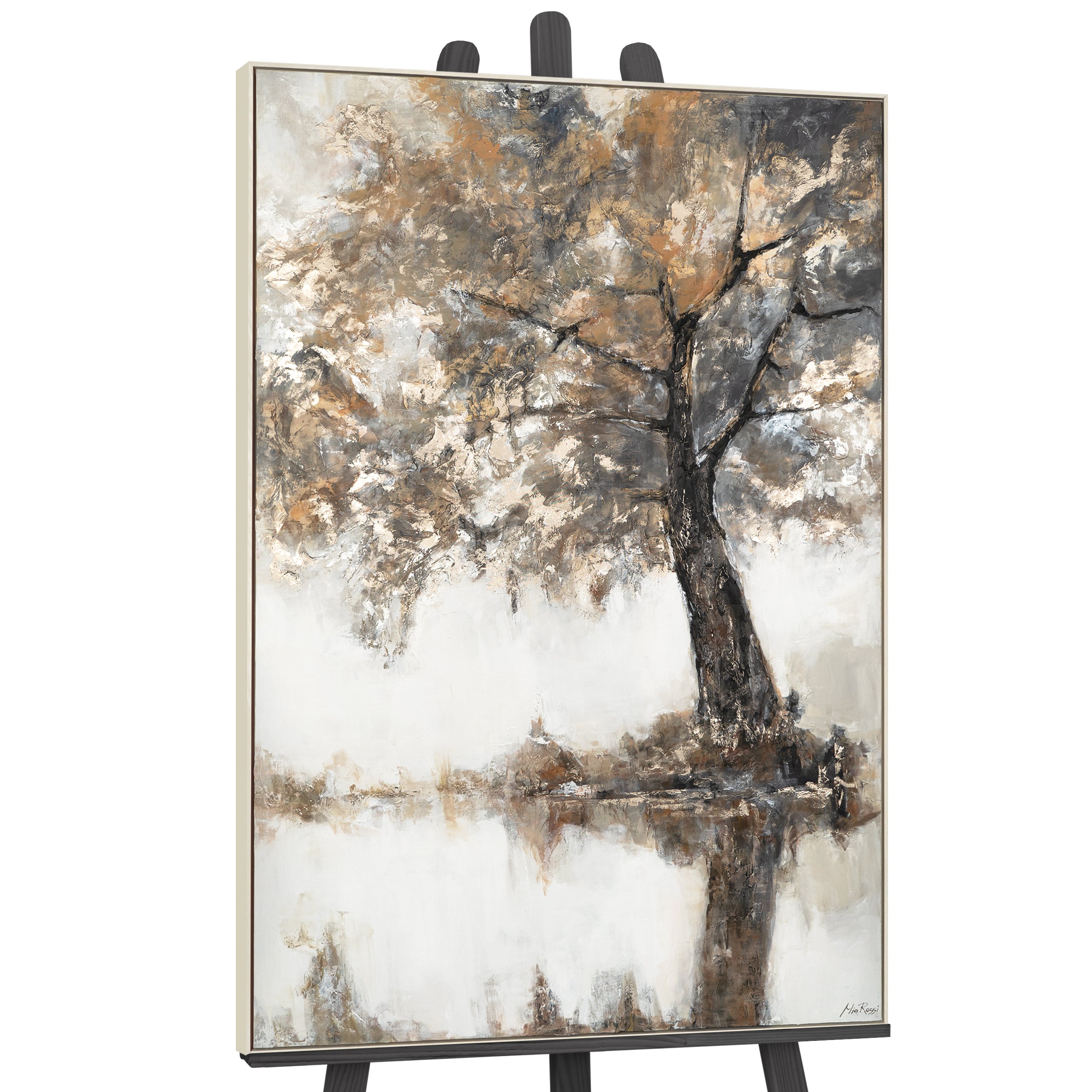 • Handgemaltes Baumgemälde in Beige mit Rahmen Lyrischer Baum