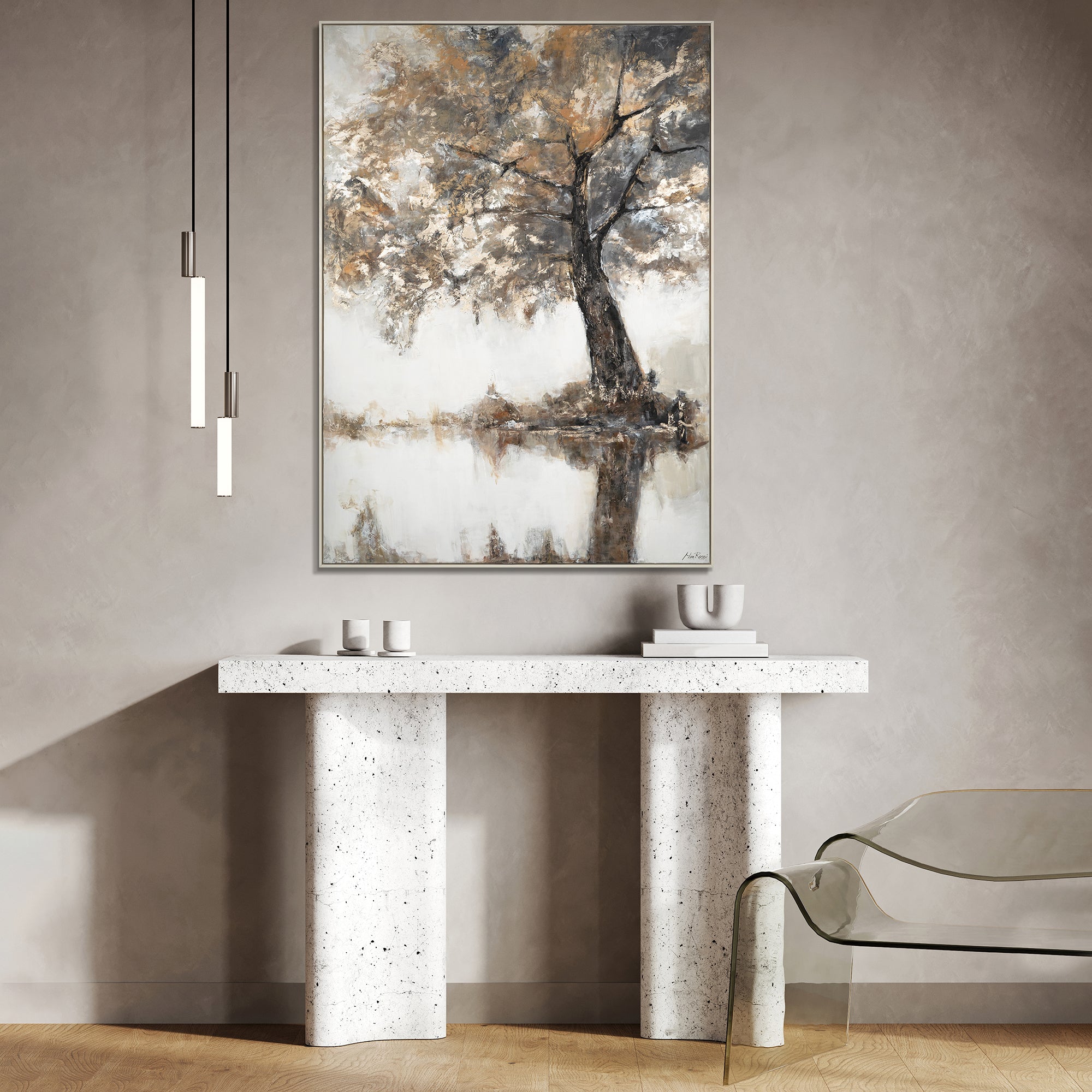 'Stille Reflexion' ist ein eindrucksvolles handgemaltes Kunstwerk, das einen majestätischen Baum in sanften Beigetönen darstellt. Die subtilen Farbübergänge und die texturreiche Darstellung des Baumes vermitteln eine beruhigende Atmosphäre, die jede Raumgestaltung bereichert.