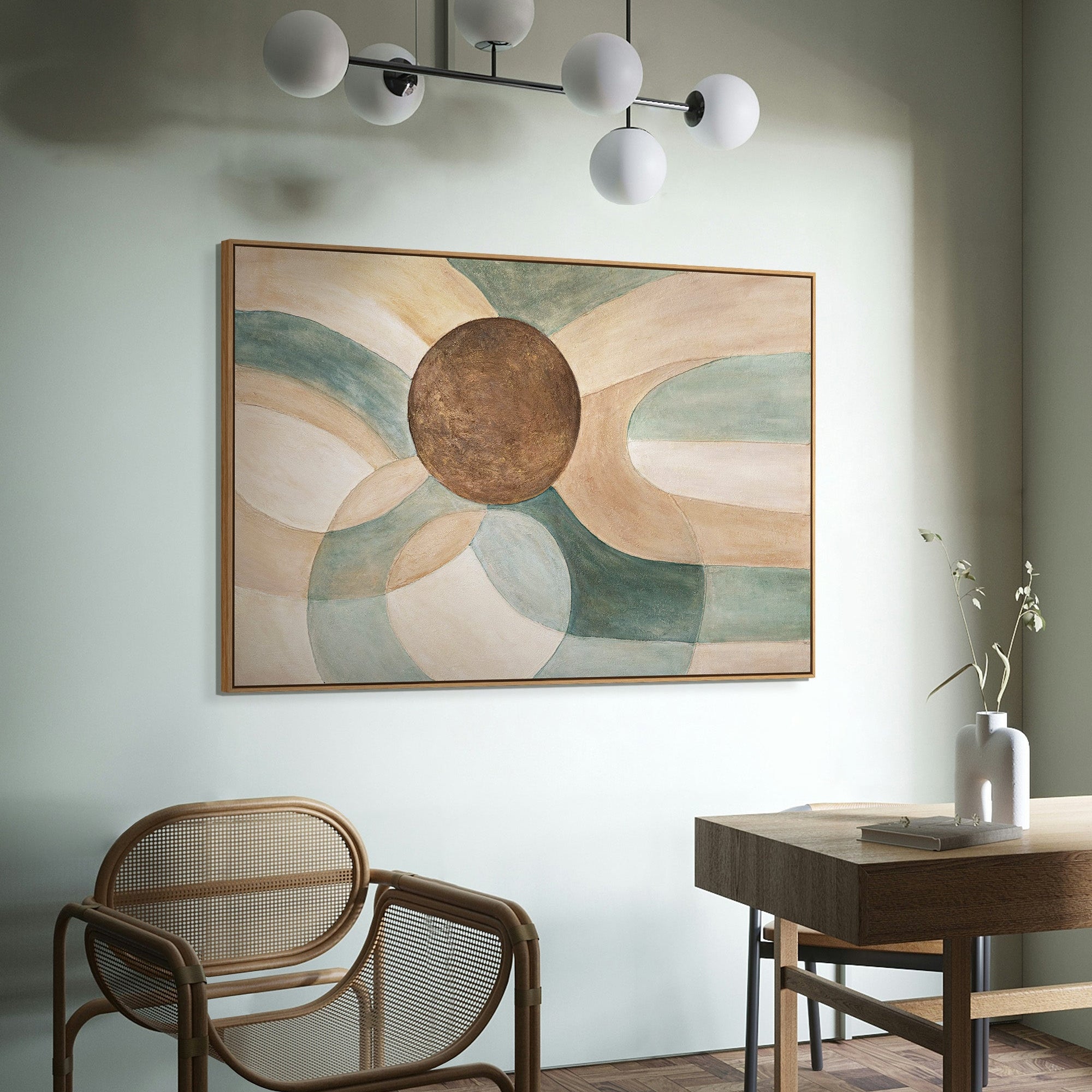 « Cycle de la vie » symbolise l'équilibre, la continuité et la sérénité. Le tableau crée une atmosphère apaisante et s'inscrit dans un concept de pièce épuré et intemporel, sans pour autant l'imposer.
