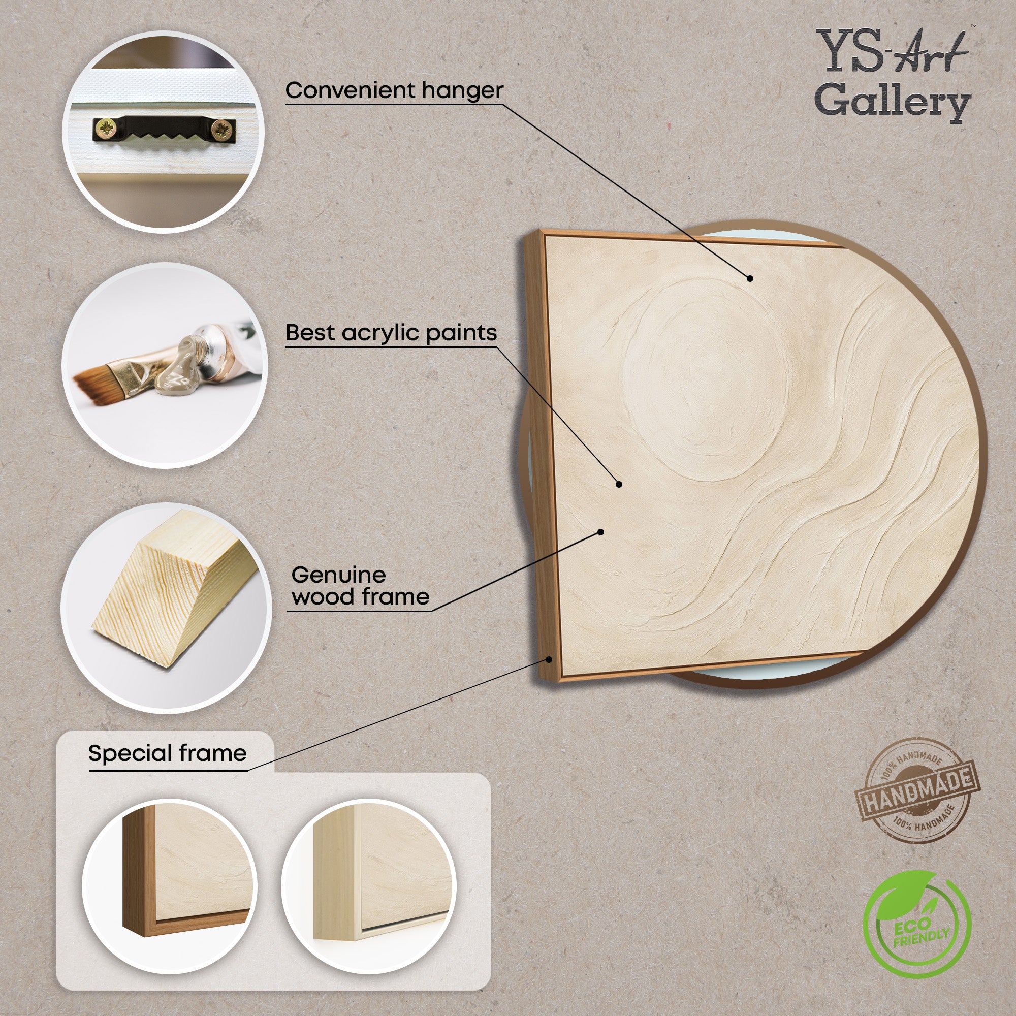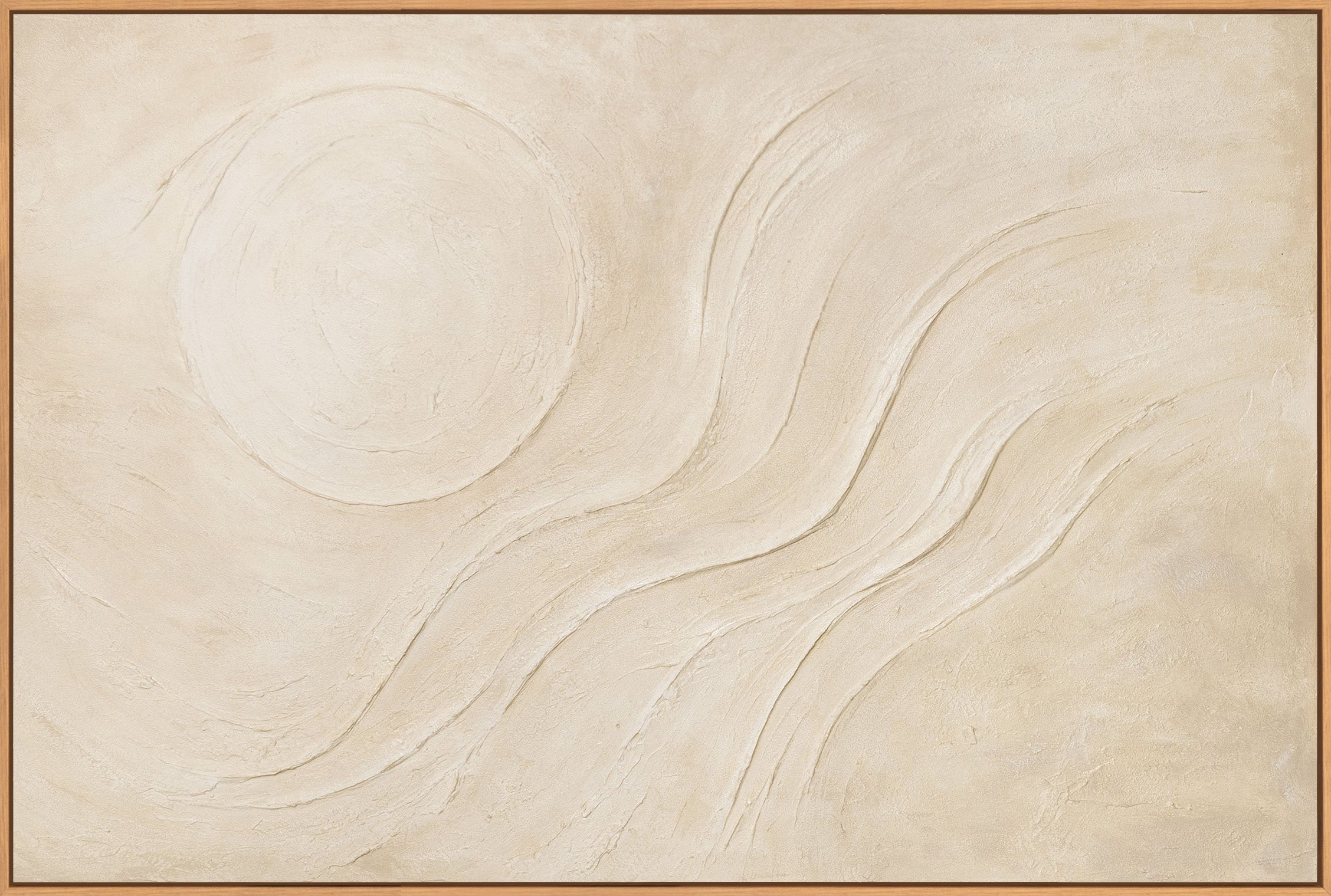 « Soleil de sable » symbolise la chaleur, la légèreté et l'harmonie intérieure. Ce tableau apporte calme et luminosité à la pièce, crée un effet équilibrant et favorise un mode de vie épuré et naturel, sans alourdir visuellement l'espace.